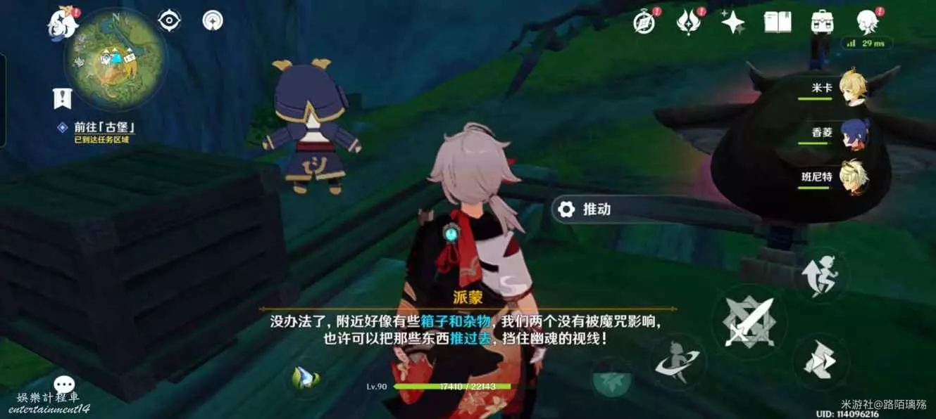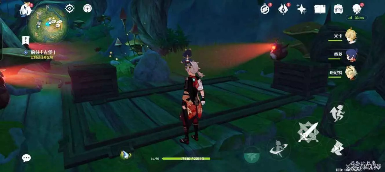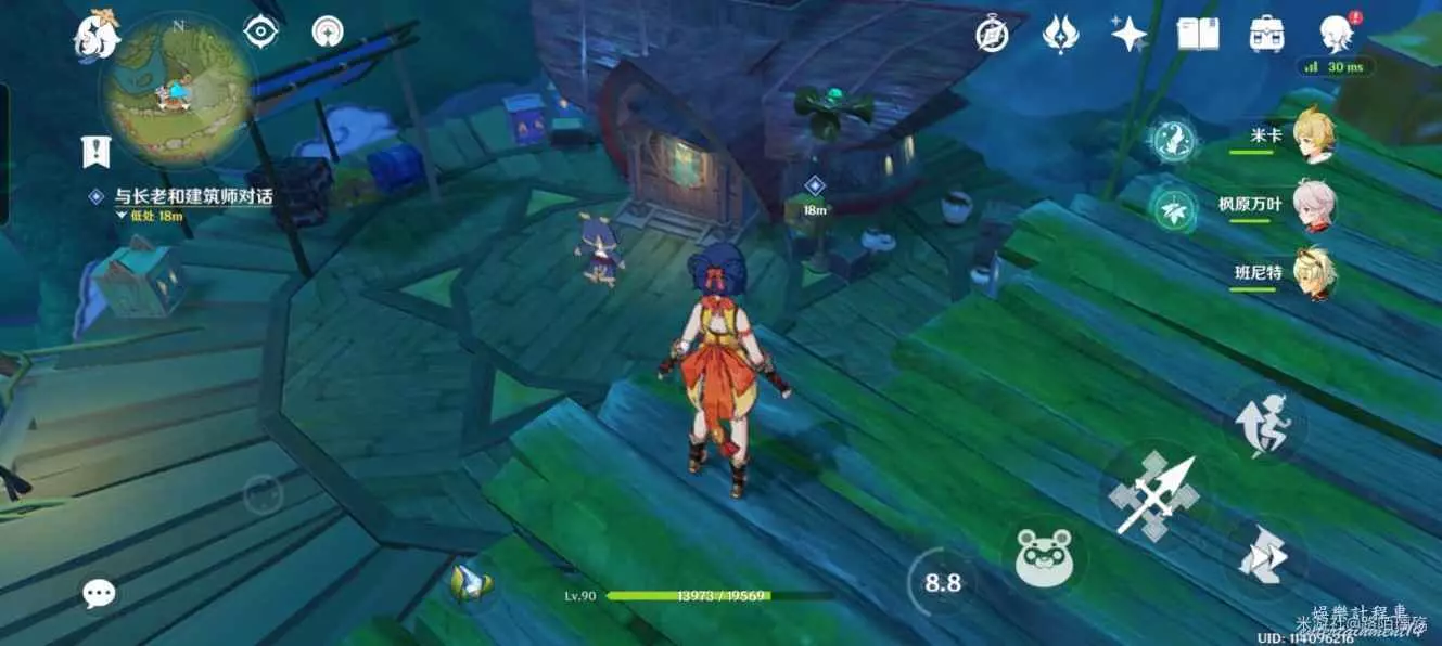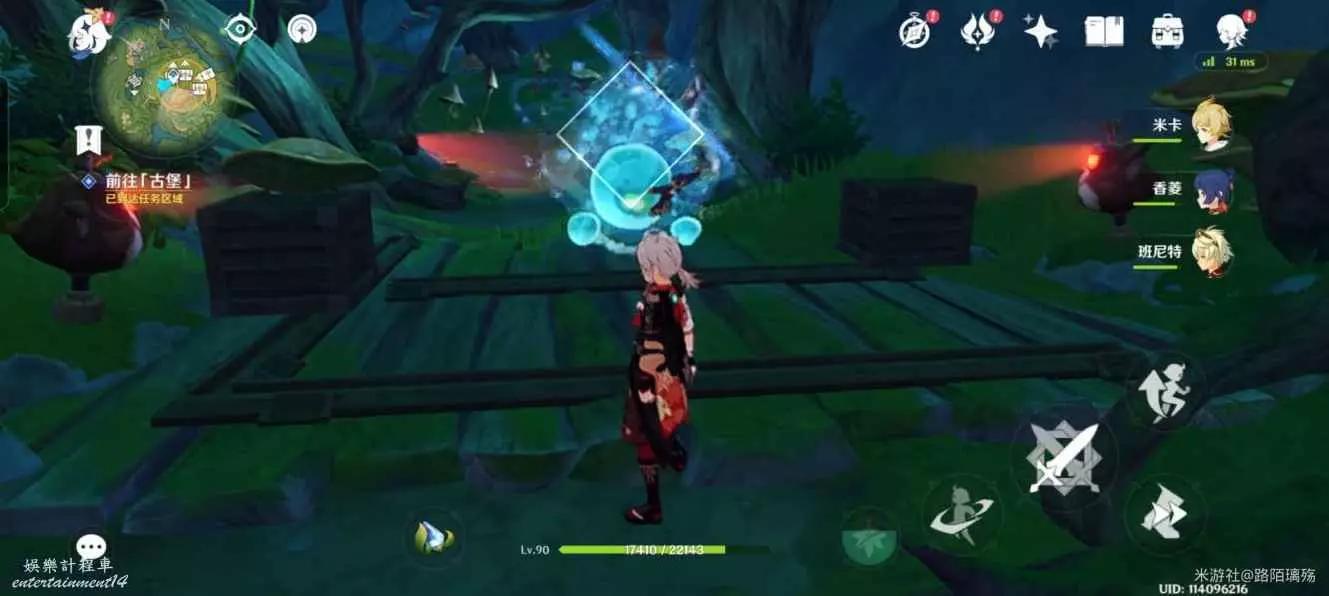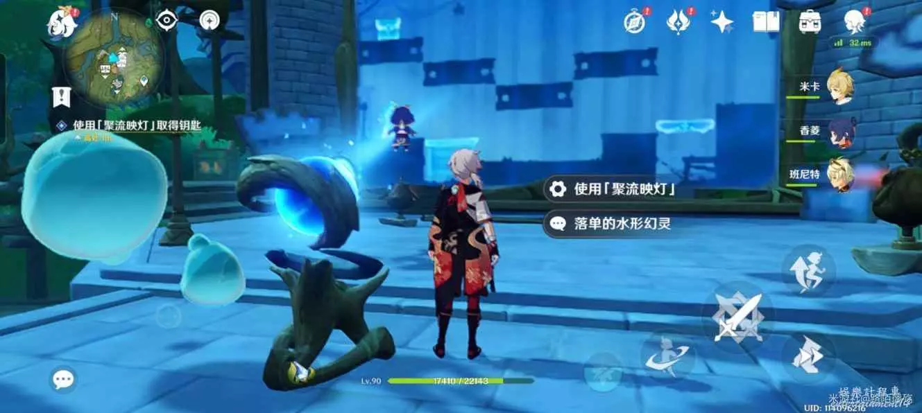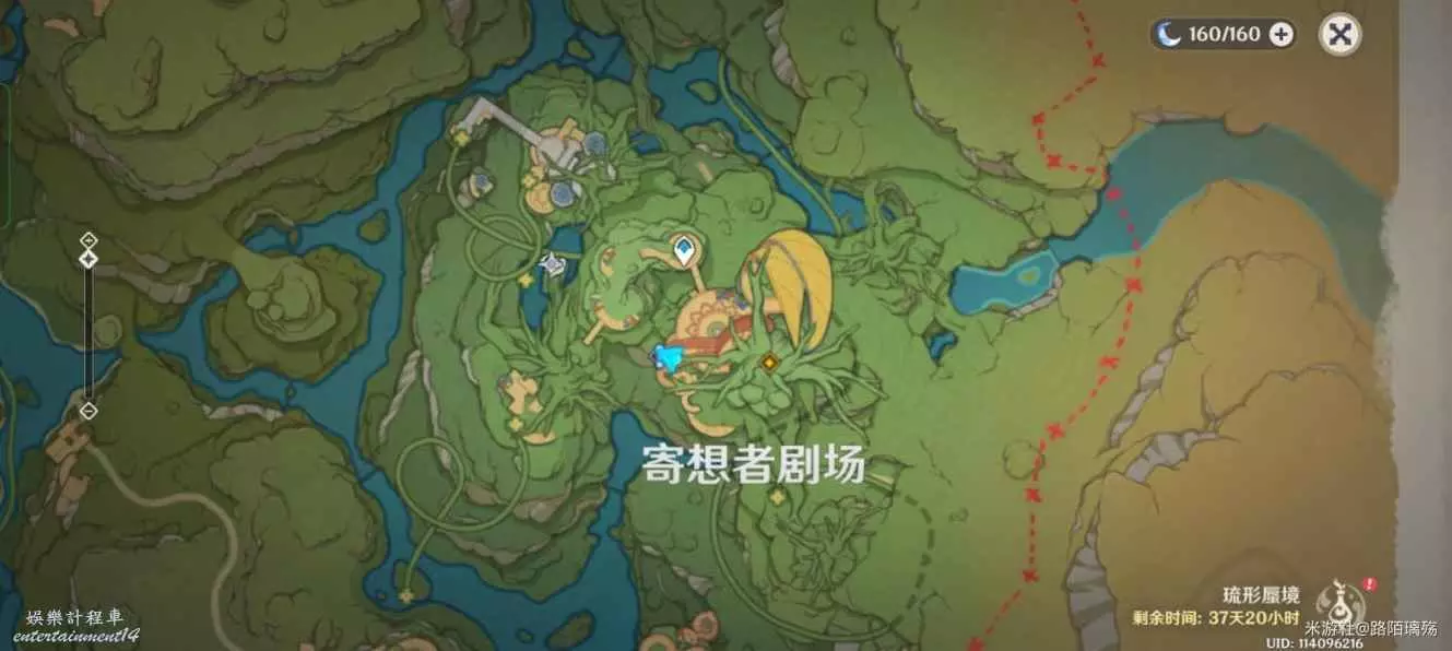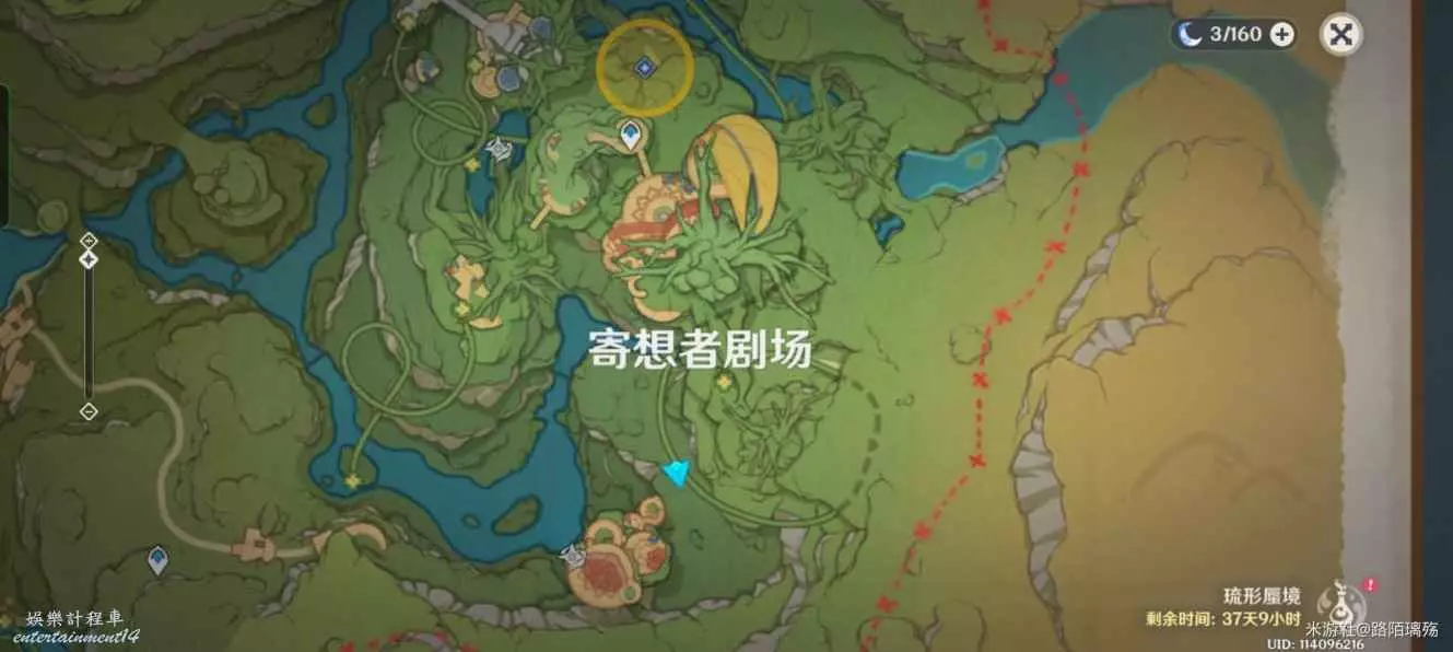 位置:(在前一個任務的摩拉池中,抬頭,借助四葉印,沿著道路出來,洞口處有一個挑戰,完成挑戰就可以到這個喇叭處)