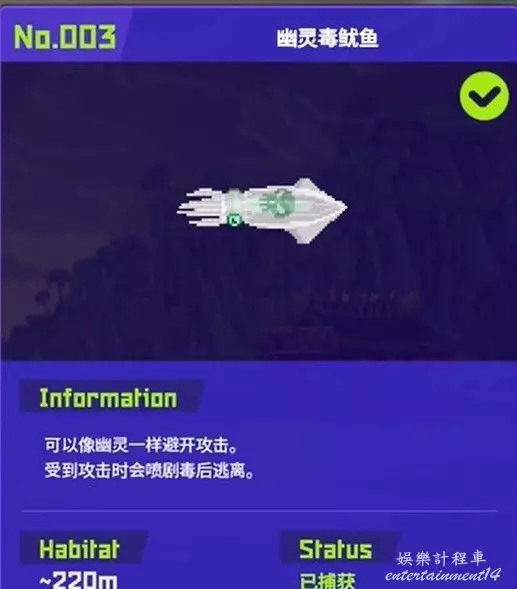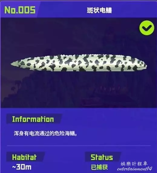 分佈在海底30米,全身通電,捕他的時候請保持好距離,沒有武器要求。