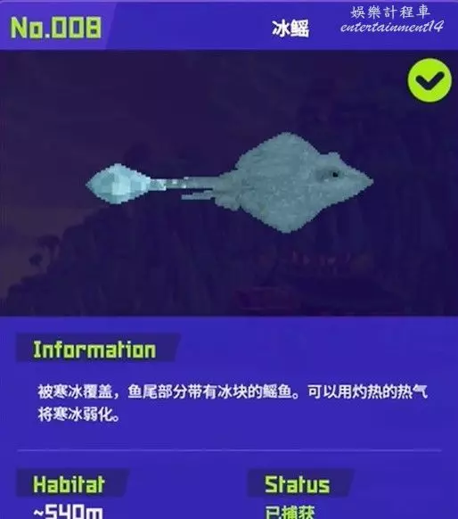 分佈在熱噴泉最下方左邊的那個副本裡,位於600米的海底深處。需要攜帶寒冰的武器,帶冰屬性的武器寒冰槍,使用寒冰槍對其進行冰凍的時候,可以用小刀快速砍擊造成傷害,最後將其捕獲。