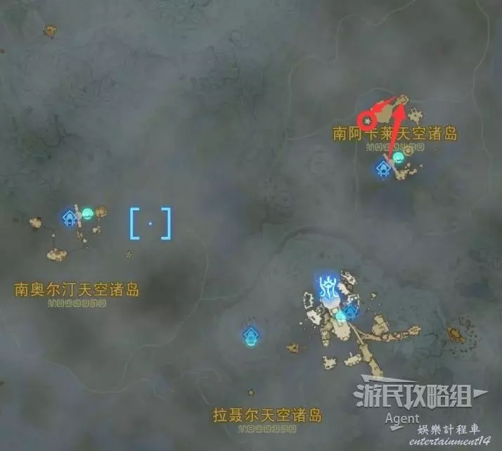 一個在阿卡萊地區上空。這個星形島有點高,從南阿卡萊天空諸島使用彈射器飛到北面的島上有飛機,然後多帶電池開飛機飛上星形島拍照。