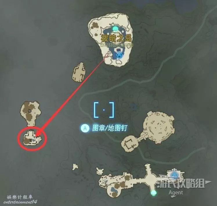 右邊小島上有【賢者的遺志】,左邊大島底部有【殘舊的地圖】。