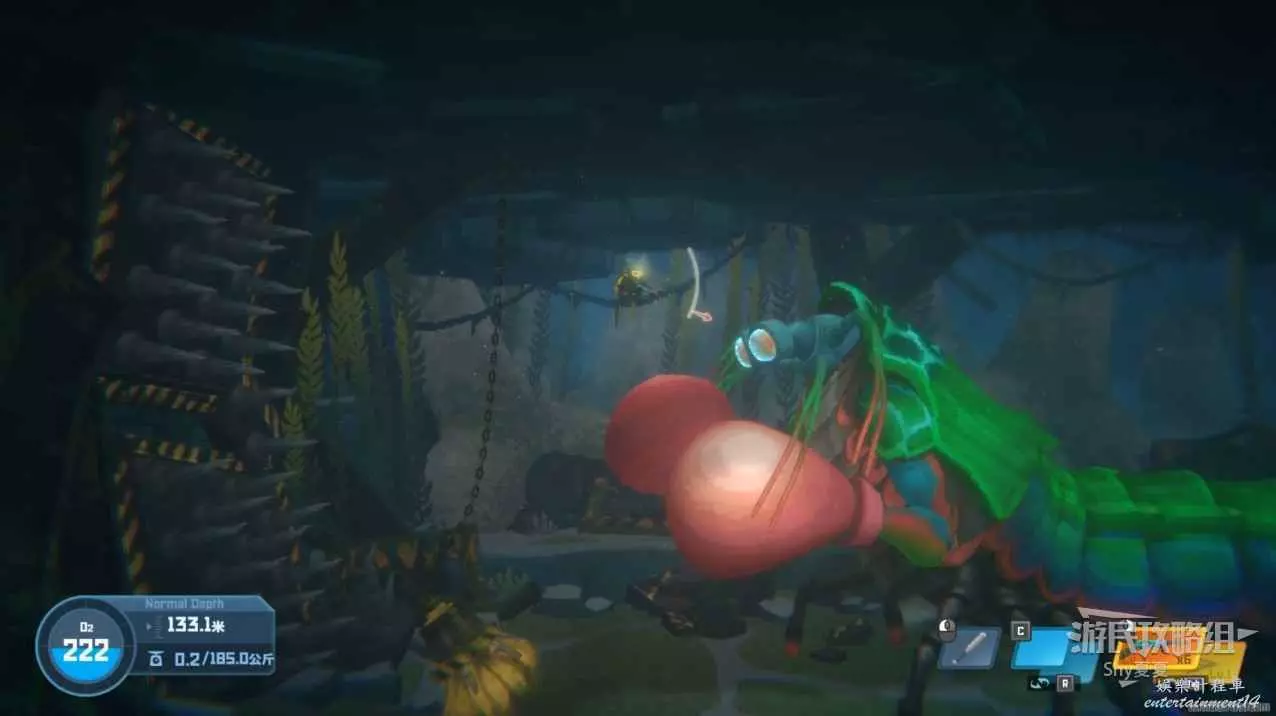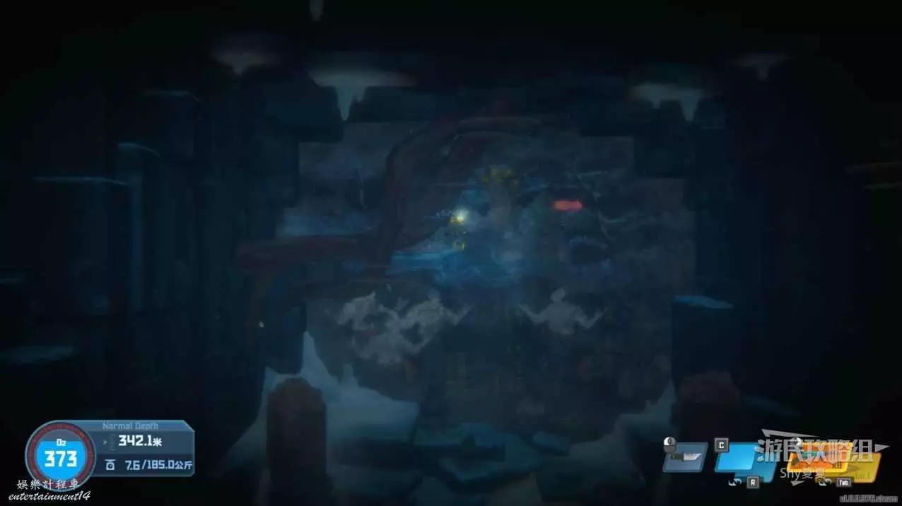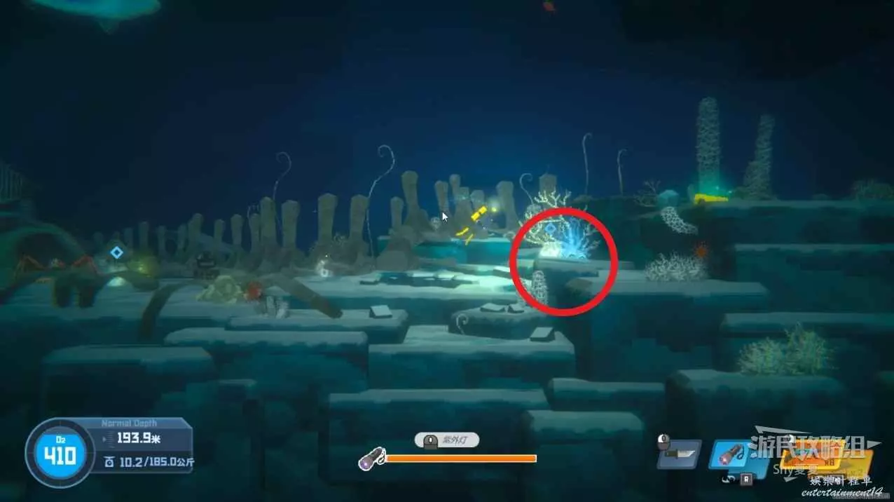 再次追蹤信號,來到深海可以撿起【紫外燈】,這個道具在深黑非常重要,看到下圖的觸鬚開燈就能通過。
