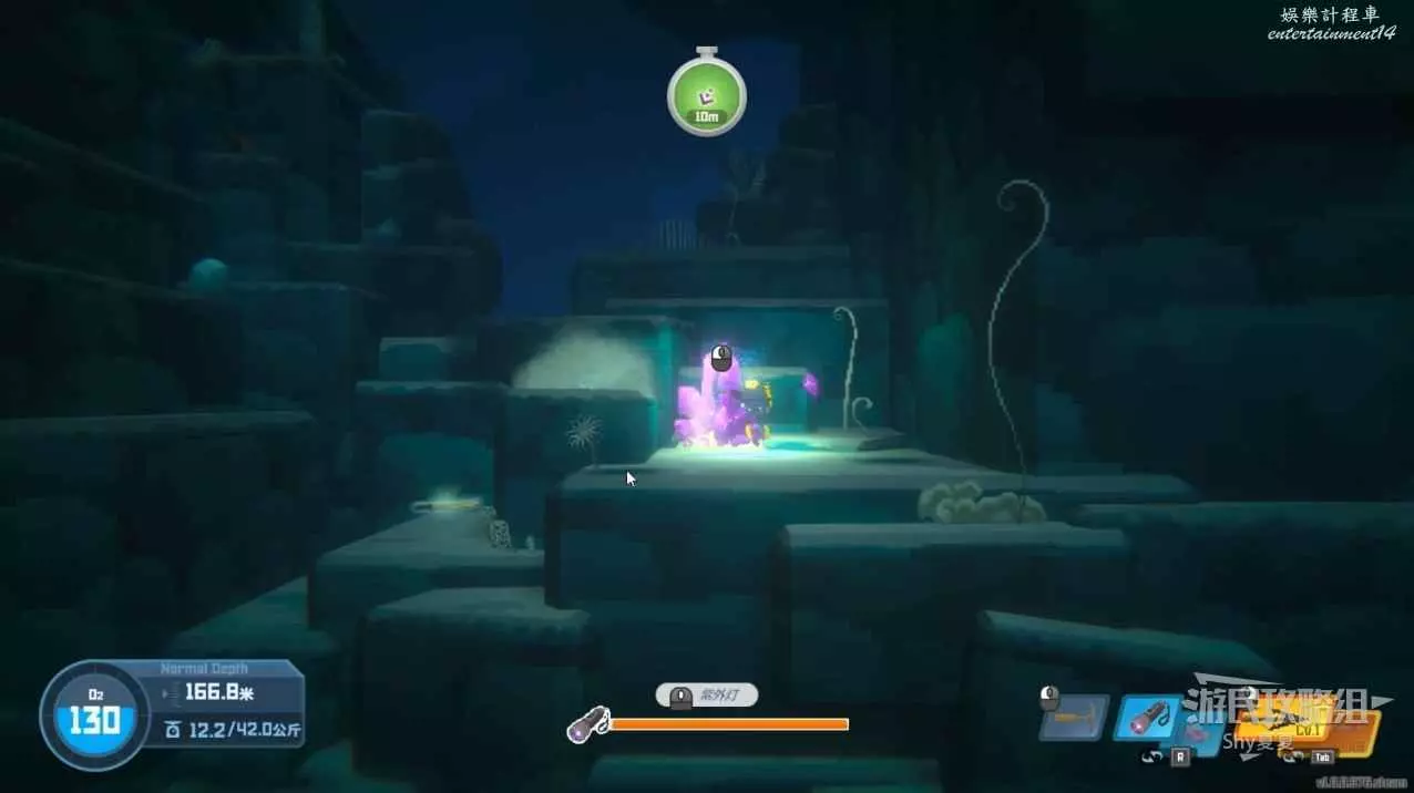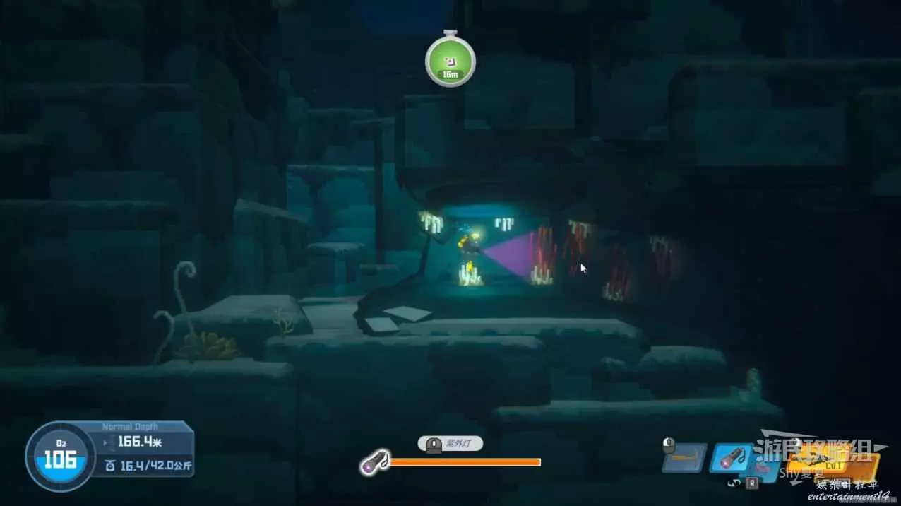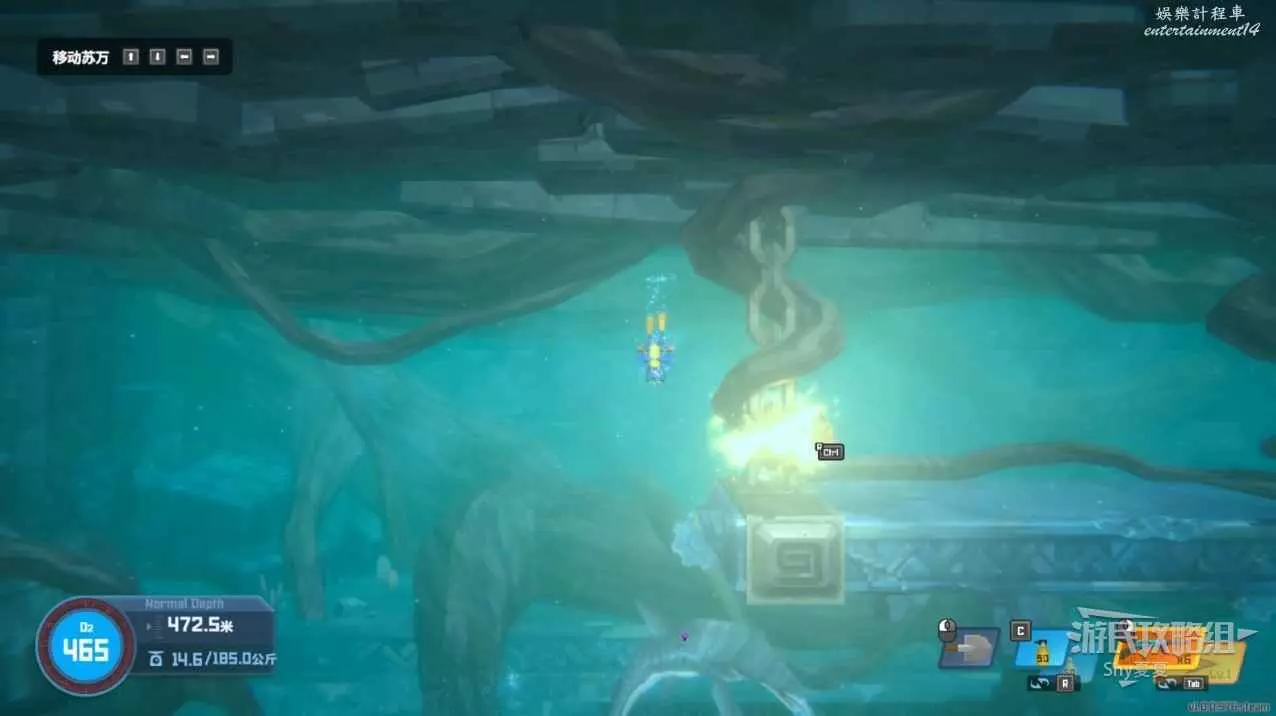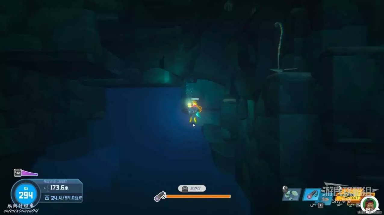 再次追蹤信號,來到深海可以撿起【紫外燈】,這個道具在深黑非常重要,看到下圖的觸鬚開燈就能通過。