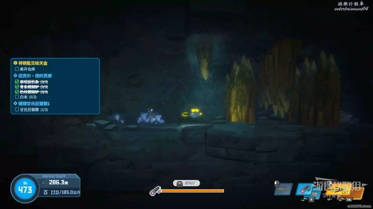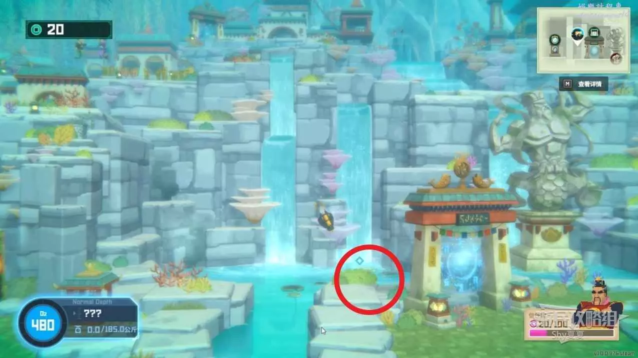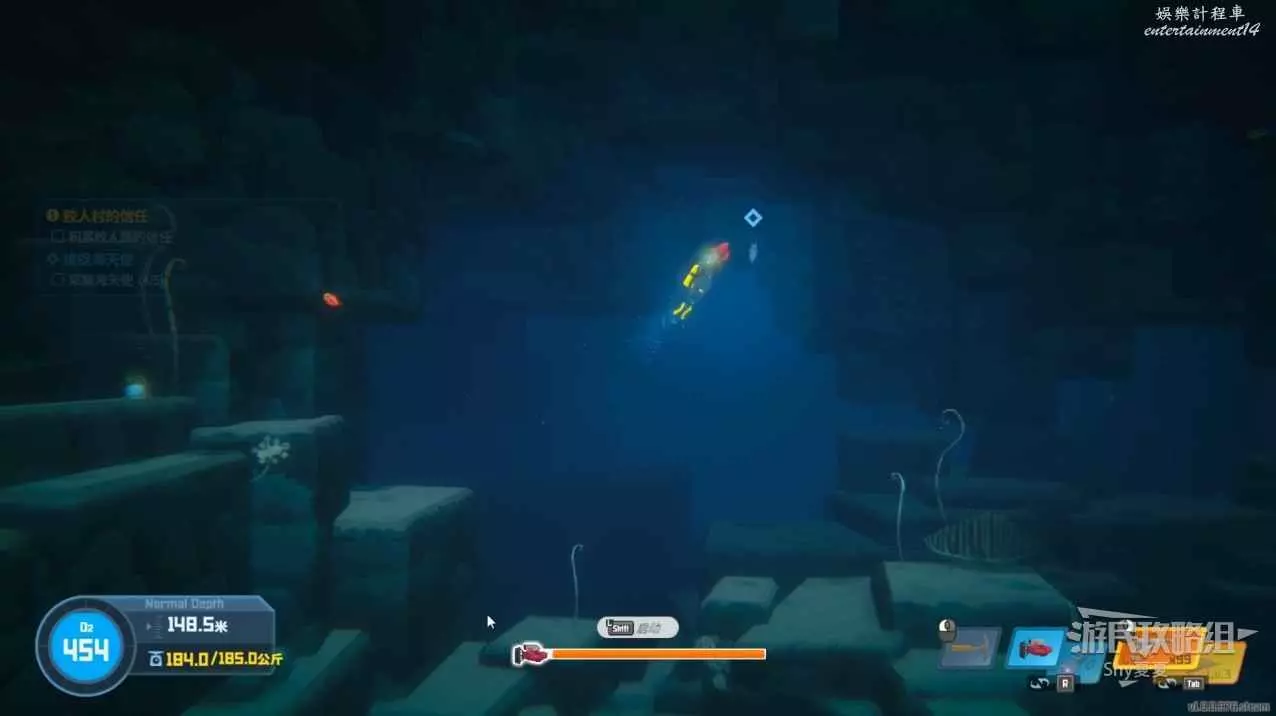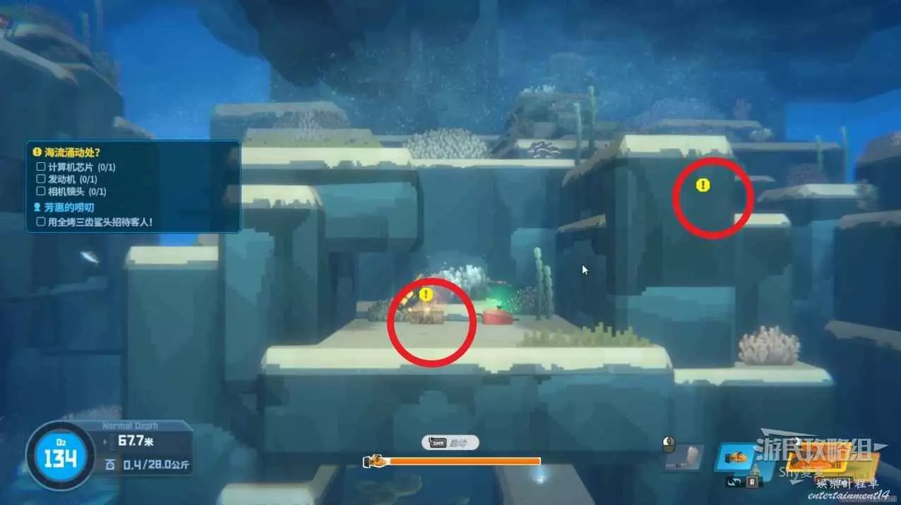 任務物品都會在水中用藍色菱形標記。