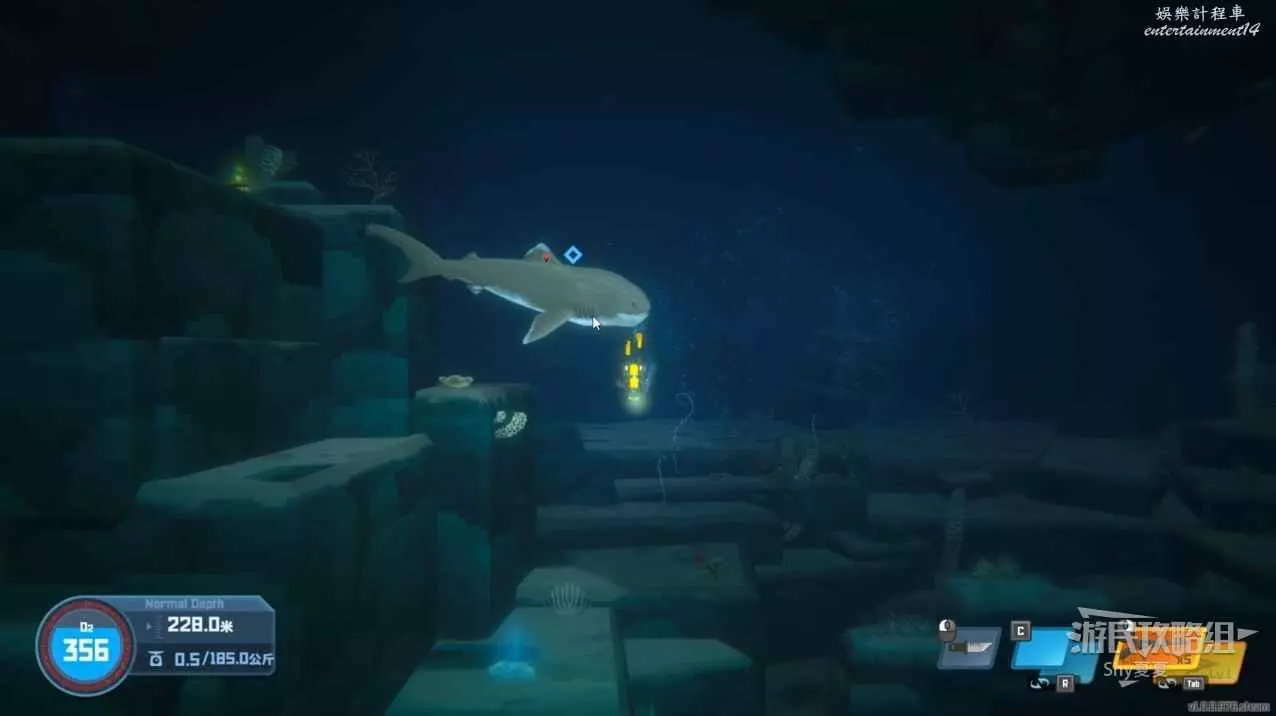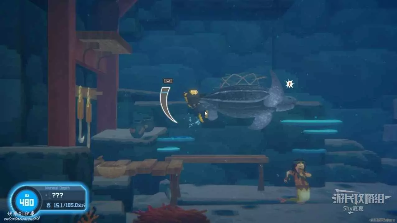 在洞內進行拍照後,就會遇到尖吻鯊,擊敗之後割掉肉,完成任務。