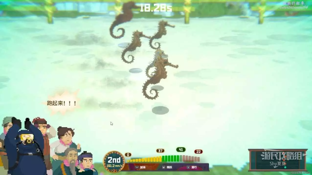 登記海馬,參加比賽即可,比賽中要保持在綠色最後一兩格,這樣速度是最快的,如果進入紅色就會減速。