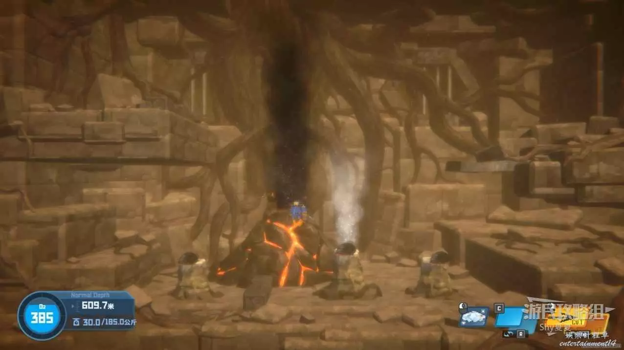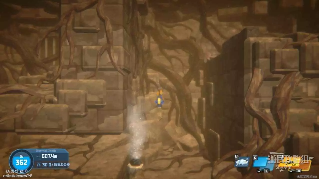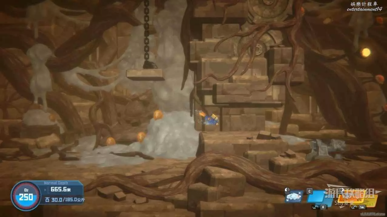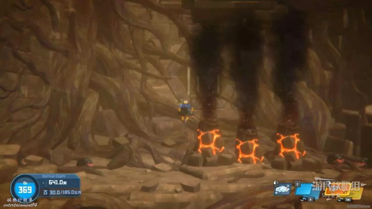 接下來要躲避黑煙,來到最下層,建議莽過去,操作甲蟲堵口難度也很高,失誤了消耗的氧氣量還不如直接莽過去。