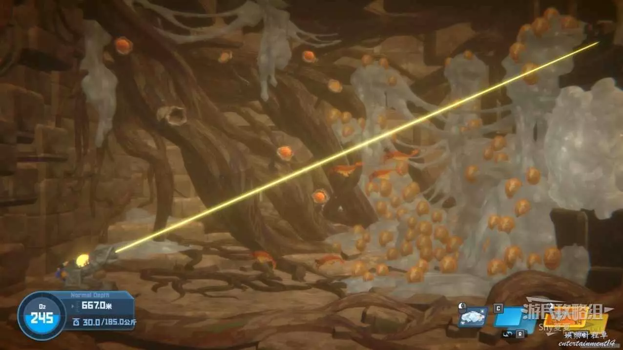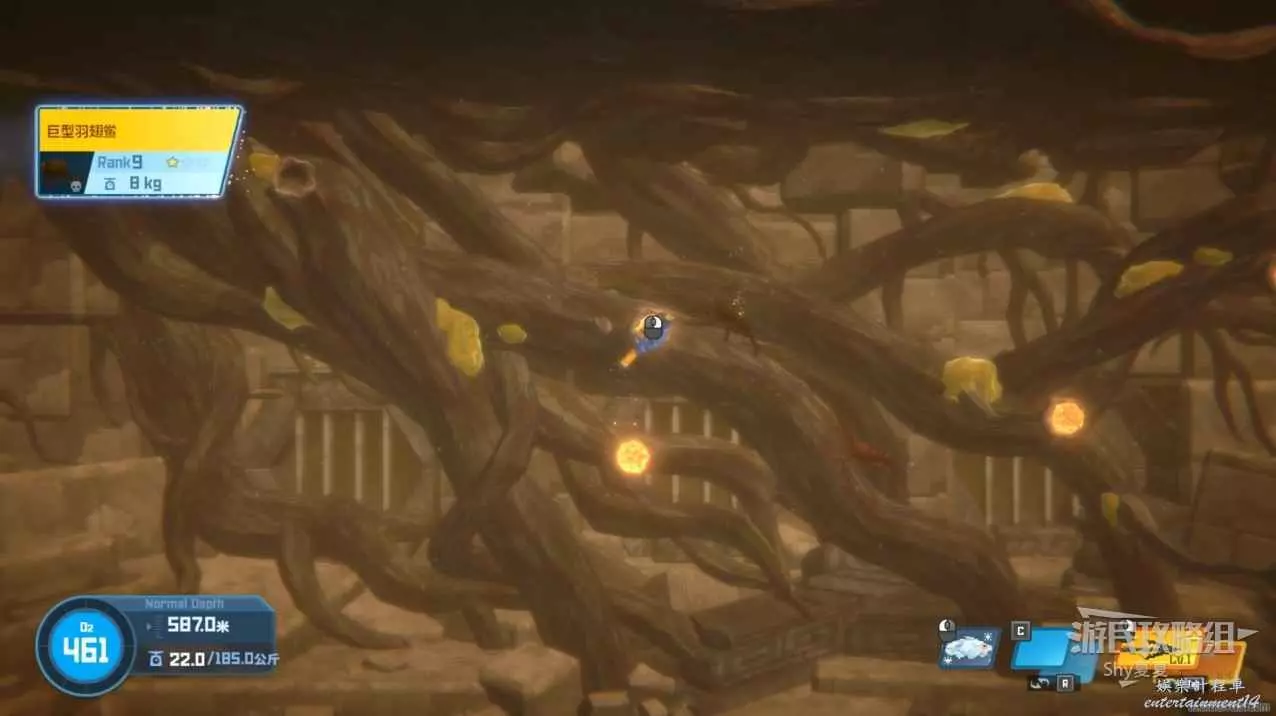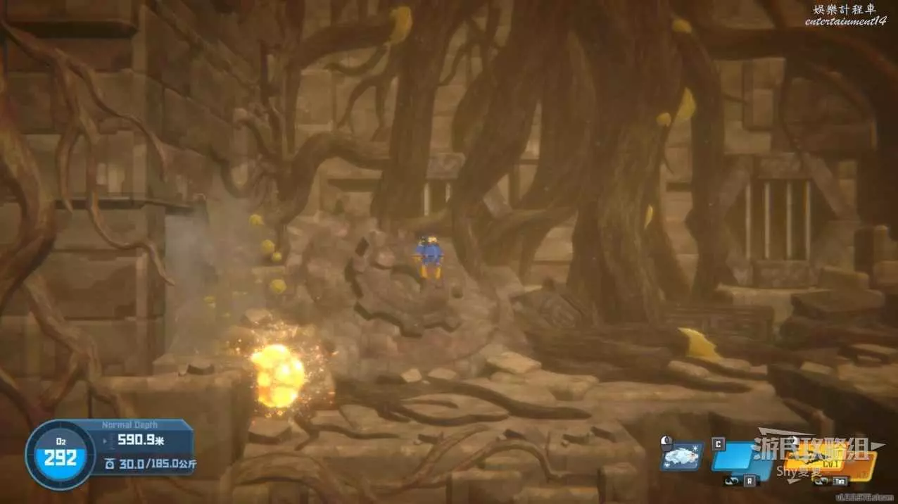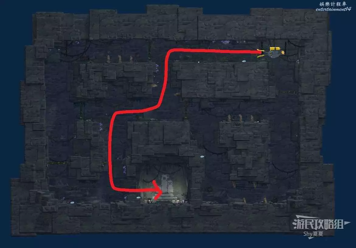 接下來要躲避黑煙,來到最下層,建議莽過去,操作甲蟲堵口難度也很高,失誤了消耗的氧氣量還不如直接莽過去。