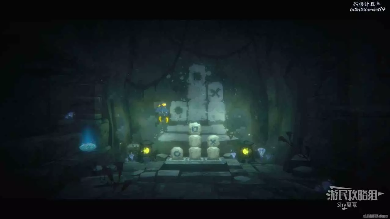 到了下面開始進行解謎,謎題就是把地上的石頭擺放成牆上圖案的樣子。