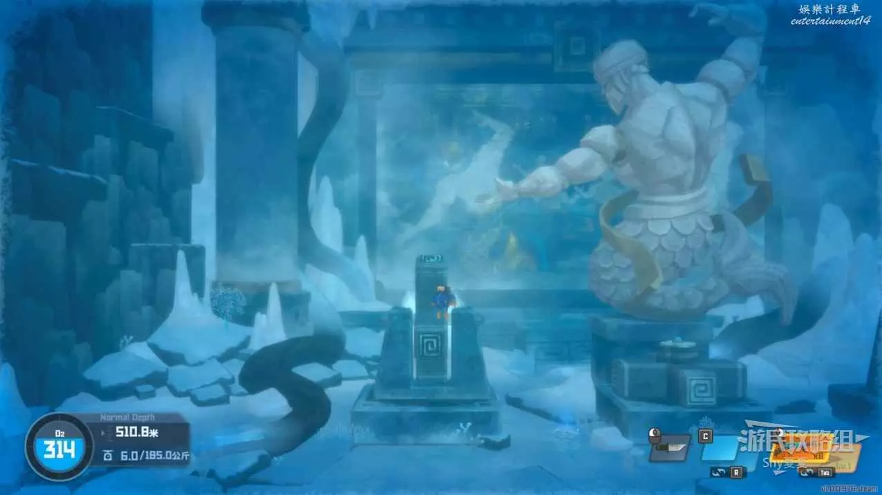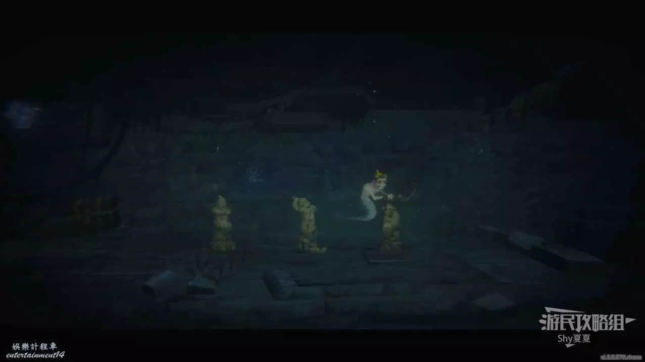 路上有兩個難點,第一個是巡邏的鮫人,需要利用雕像躲避。
