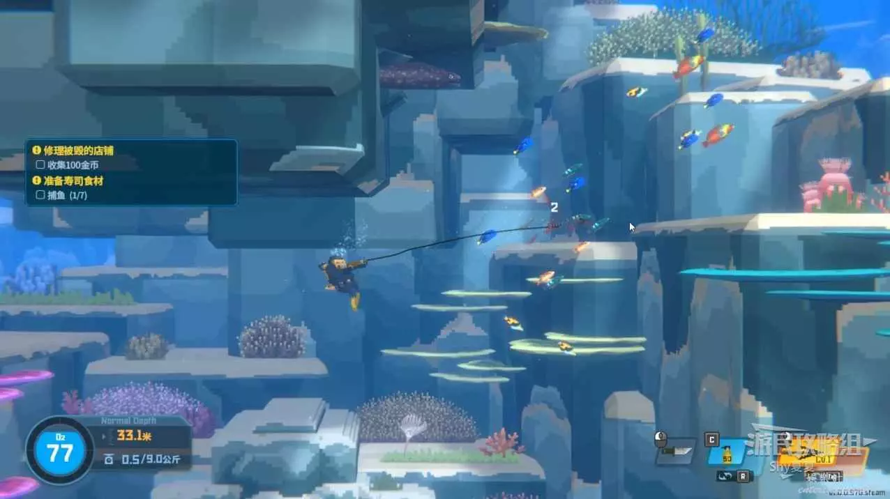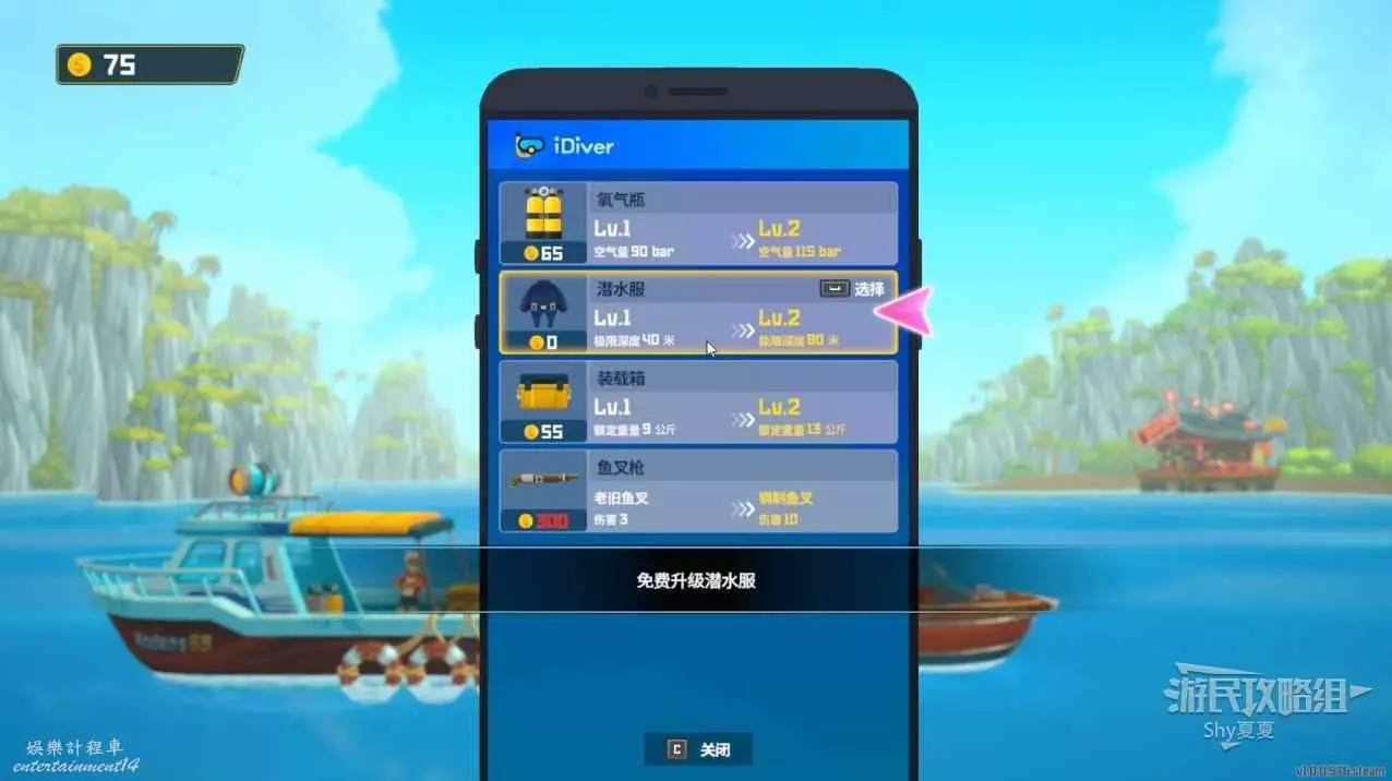 接取任務後就可以升級水下裝備了,這裡建議優先升級氧氣瓶和裝載箱,潛水服跟著主線走,主線需要了再升級,沒必要提前升,魚叉可以不升級,因為有武器的存在,不太需要魚叉。