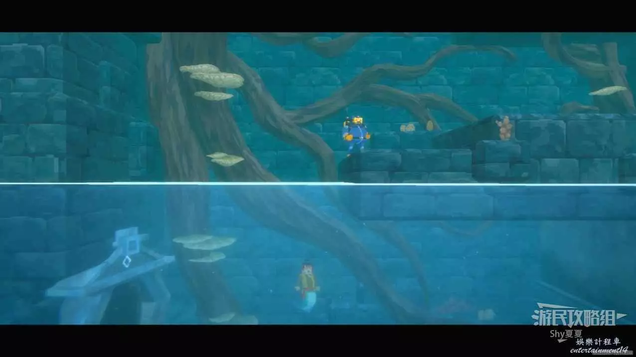 通過之後利用雕像躲避邪惡鮫人。