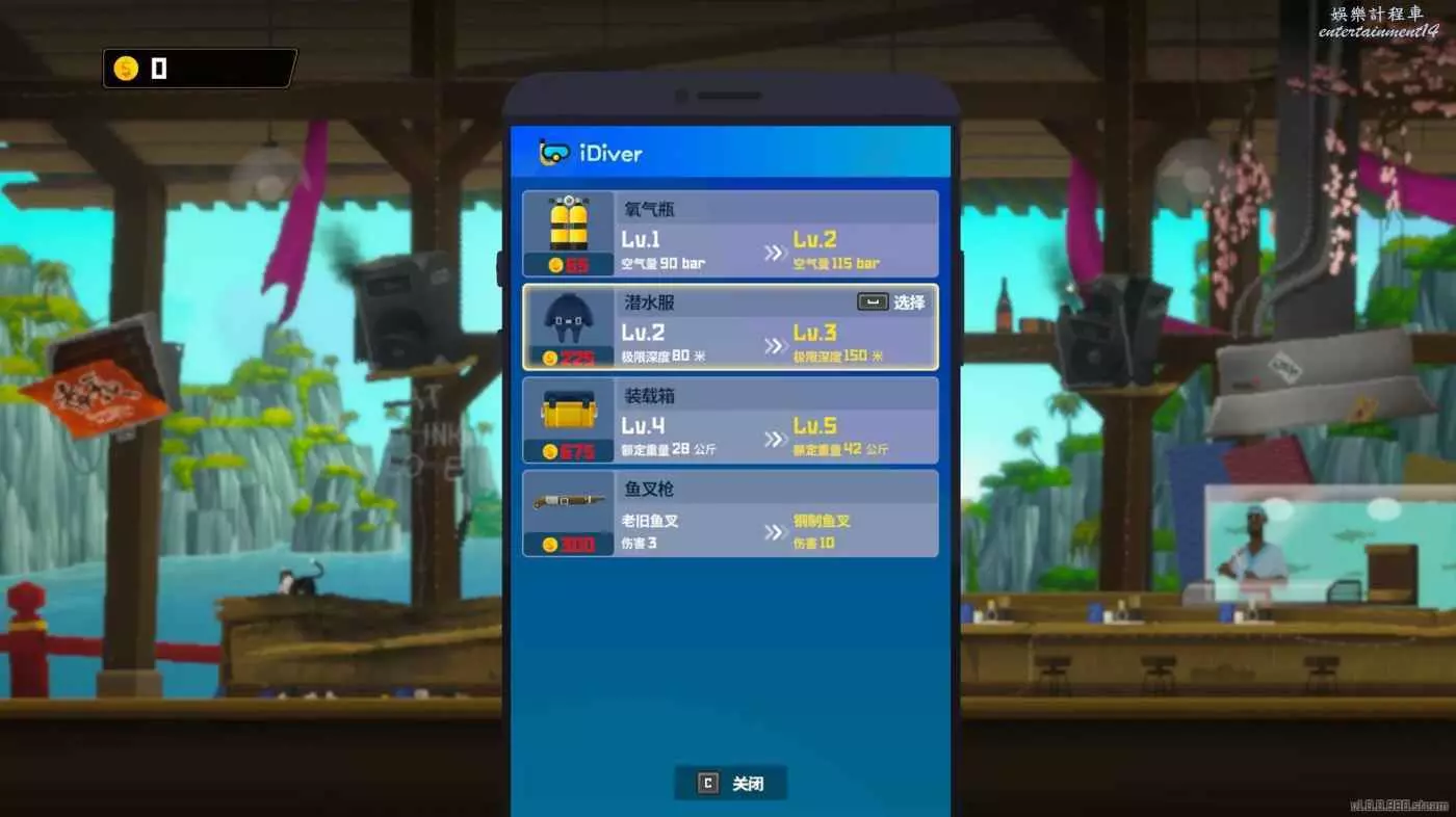 潛水深度升級到80m非常重要,80米會刷紅藍兩種小魚,負重只有0.2kg和0.3kg,售價卻高達10塊錢,多抓幾條小魚就相當於多賣出一份虎鯊壽司(說明一下,這兩張小魚的圖不是同一個檔的)
