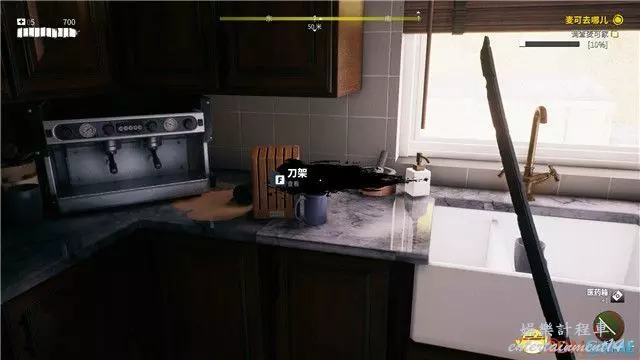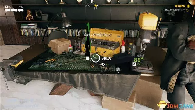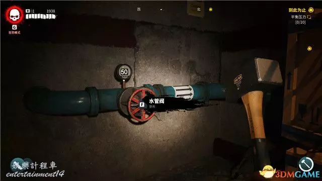拾取房屋內位於櫃子上方的閥門,然後關閉路途中漏電的水管。