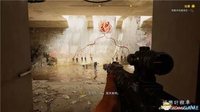 進站後你需要先進入這裡的安全屋,如圖所示,射擊房屋內遮擋大門的木箱,然後從大門進入到房間內。