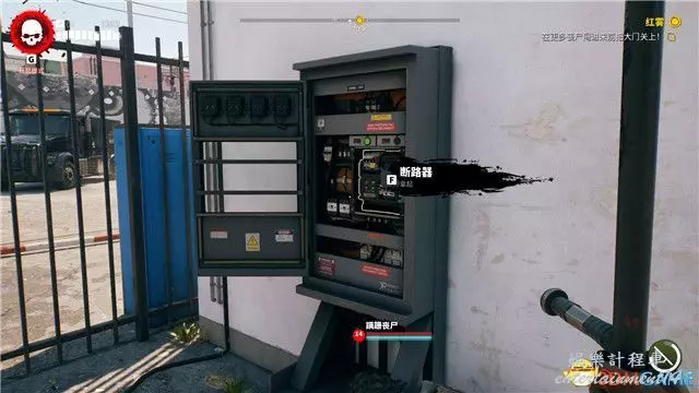 前往附近的車庫,如圖所示,按下車庫旁的按鈕,進入車庫,找到斷路器。