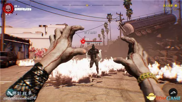 不過此時會有大量的喪屍圍攻你,你可以使用肉餌吸引開它們的注意力,然後使用油管將它們點燃。