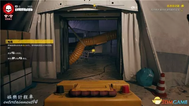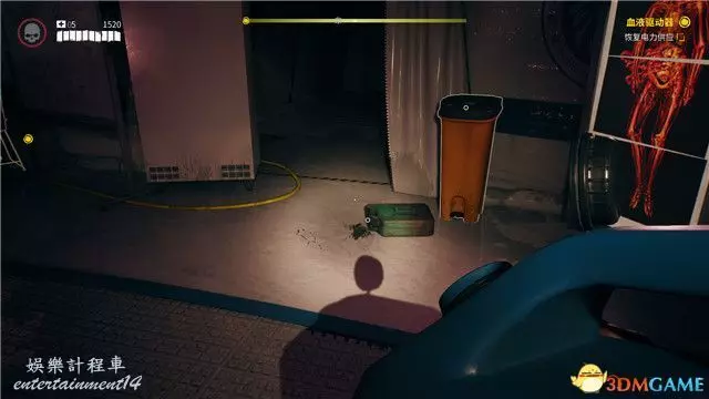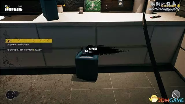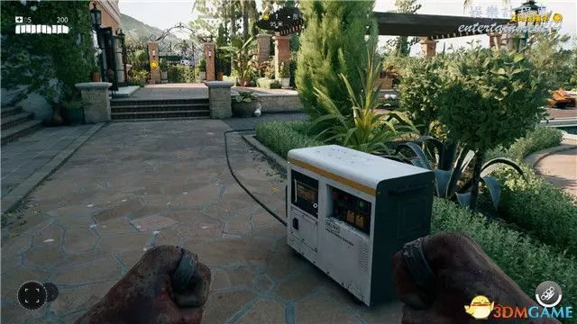 恢復電力的方法很簡單,拾取附近房屋內貨架上的水桶,然後將水桶扔到大門處漏電的電線那裡。
