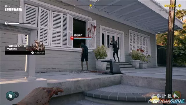 由於所有的房屋大門都處於鎖定狀態,因此你需要找到樓頂的大塊玻璃,使用武器將玻璃擊碎,才能進入房間。