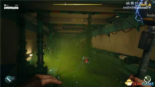 你可以利用這裡的水管,與遠處漏電的發電機相結合,將敵人引誘到這裡消滅。
