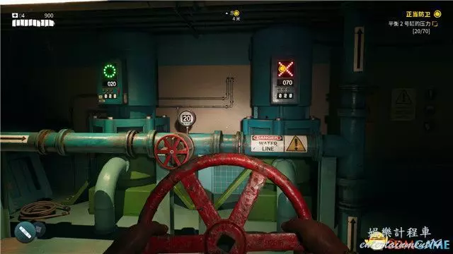 #10壓力閥位於火焰遠處,你需要先關閉油管,再開啟水管,然後再使用水桶澆滅剩餘的火焰才能到達那裡。