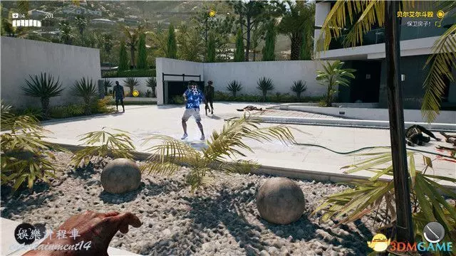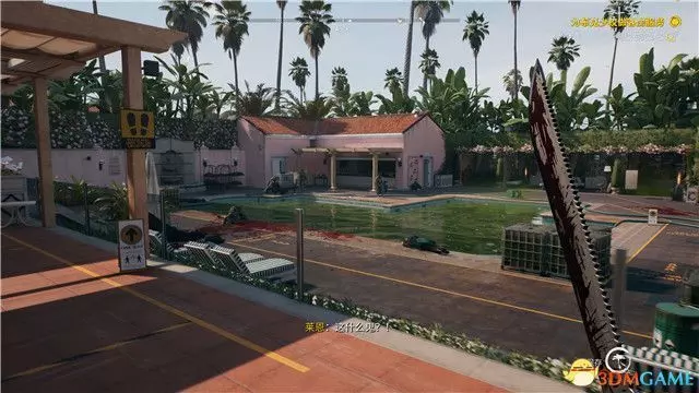然後你將從府邸後門離開,到達一個有泳池的區域。