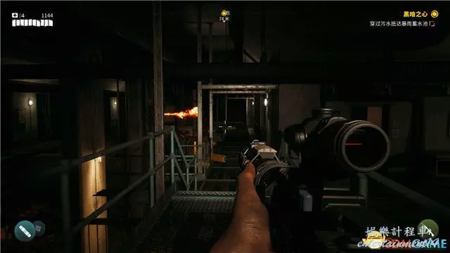 拾取武器,繼續往前走,最終你將找到飛機殘骸的另外一部分,繞過火焰。