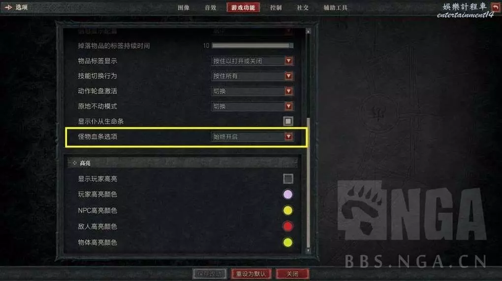遊戲功能介面,下拉找到怪物血條選項,更改為始終開啟,更方便日常使用