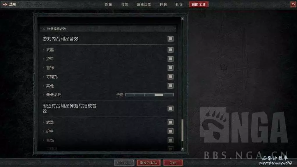 輔助工具中可以調整遊戲內戰利品掉落的音效,前期可以調成黃裝