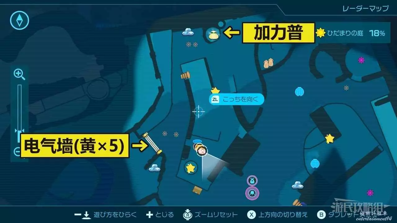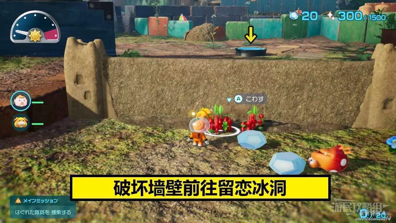 試玩版中的第二個加力普只能用黃色皮克敏收集,所以要提前準備好5只黃皮克敏。在此之前用另外5只黃皮克敏把西邊的電氣牆破壞掉即可通過。
