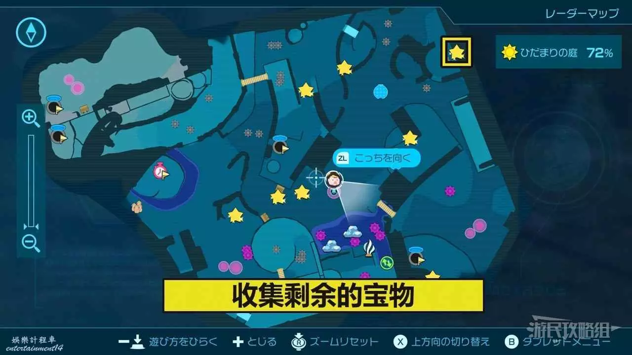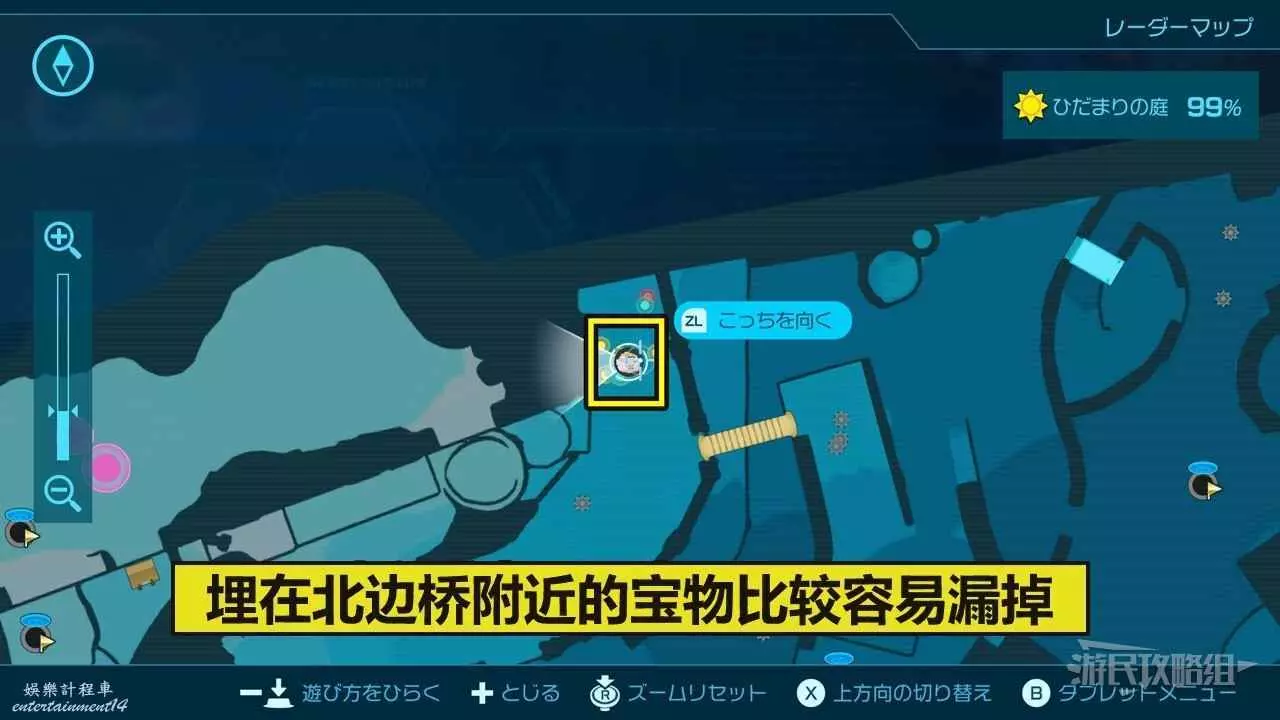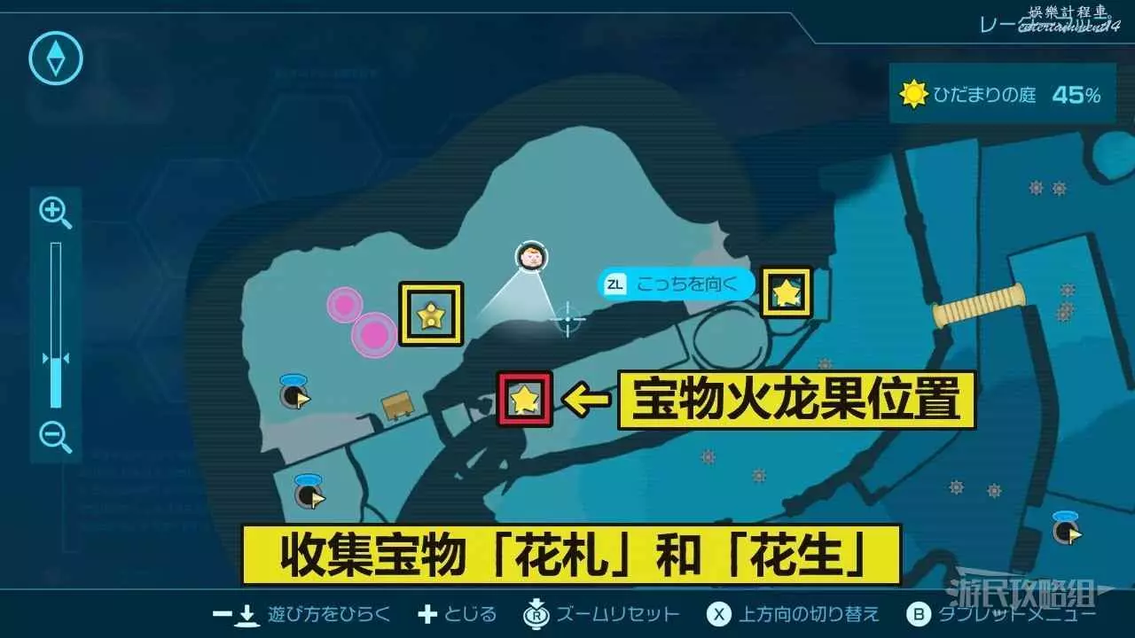 完全按照前幾天的步驟來的話,此時大世界應該還遺漏了9個寶物,東北邊高地上的紅球、東南邊的棒球需要黃色皮克敏(分別需要5個和10個),可以優先收集。然後根據自身情況收集附近的寶物,比較容易漏掉的是埋在北邊橋附近的土豆、西邊水潭裡的罐子裡和東北邊鐵板附近的壺裡。