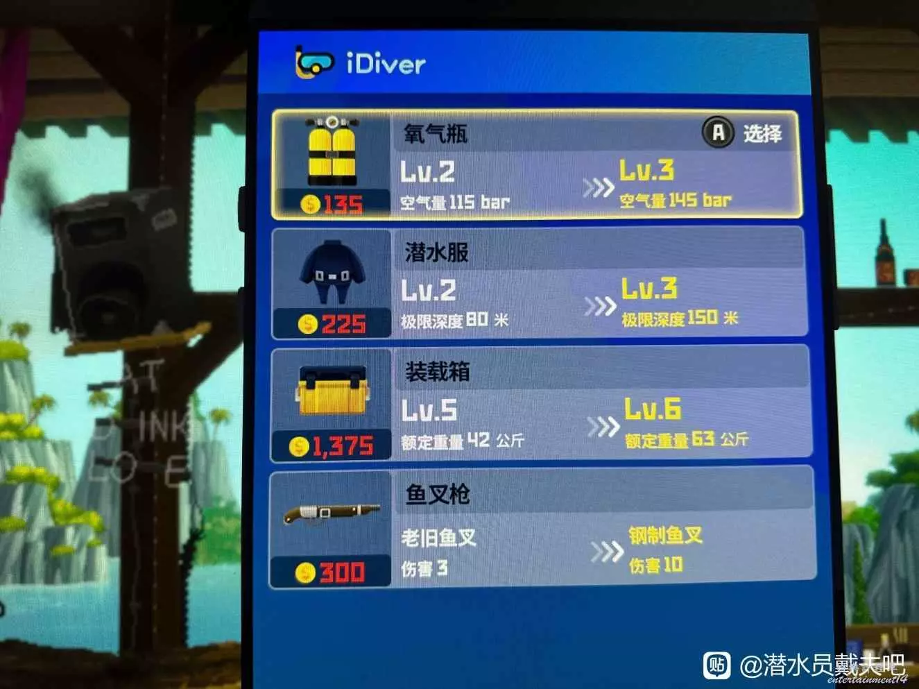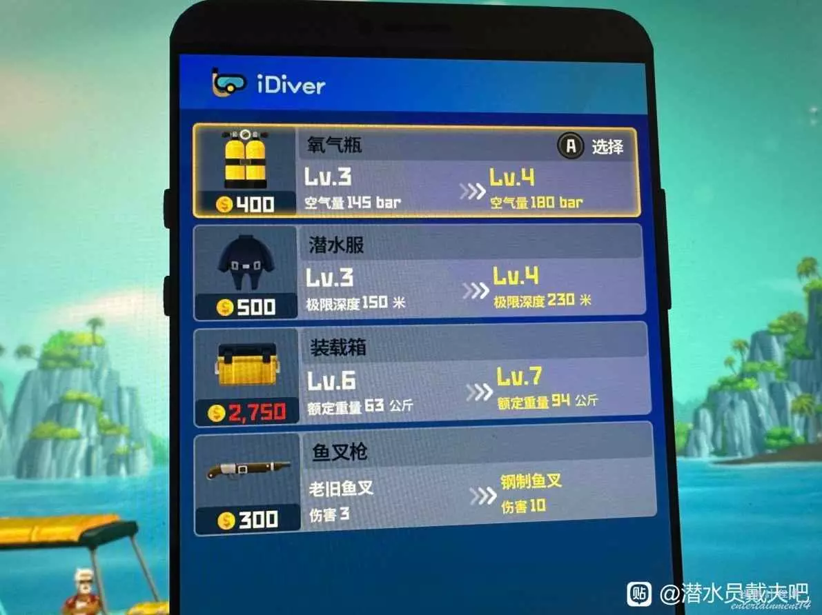 10月3號上午,開裝備升級了。賣掉除了河豚和三齒鯊頭以外的所有魚肉,再看資金缺口賣一點調料(別賣醬油!!),資金應該足夠升級裝備,見下圖一。這次下海摸魚,三齒鯊頭>河豚>藍面鴛鴦魚>大斑躄魚>紋首鮨>脂眼shen>縱帶羊魚>細鱗圓shen>虎鯊肉(最後拿)