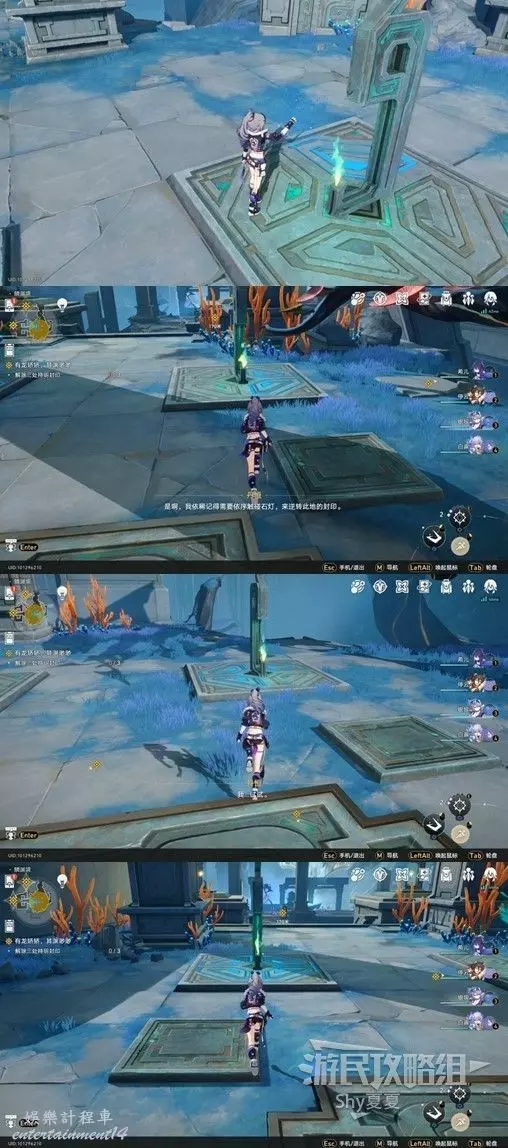 ①封印下方有亮著的方塊,根據1、2、3、4的順序依次熄滅。