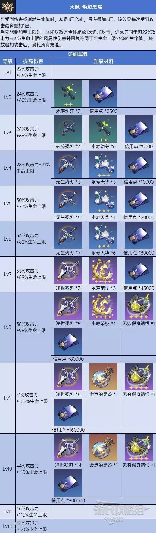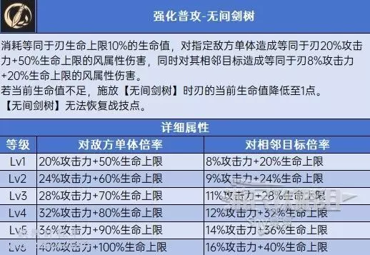 6命-命留魂銷,複返此身:充能的層數上限降低至4層。天賦觸發追加攻擊造成的傷害額外提高,提高數值等同於刃50%的生命上限。