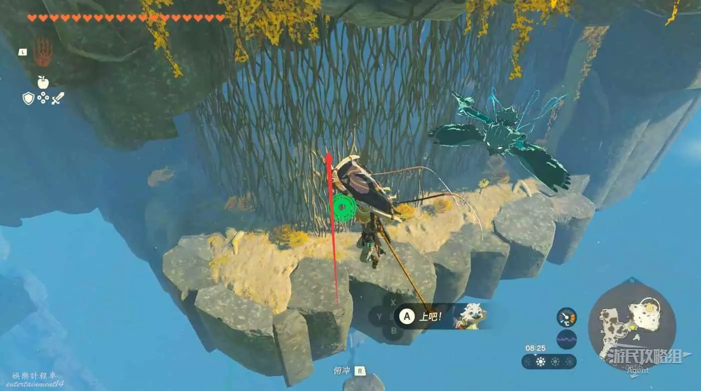 再找個平臺用火箭上升,砍斷枝蔓進去拿到水晶。