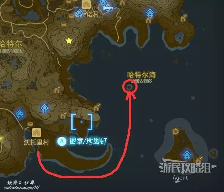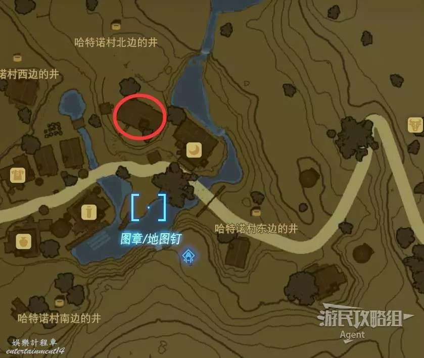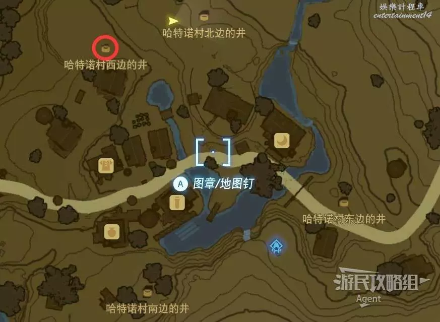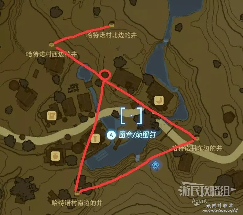 哈特諾村的東南西北四口井是相通的,地下路線大致如下圖。