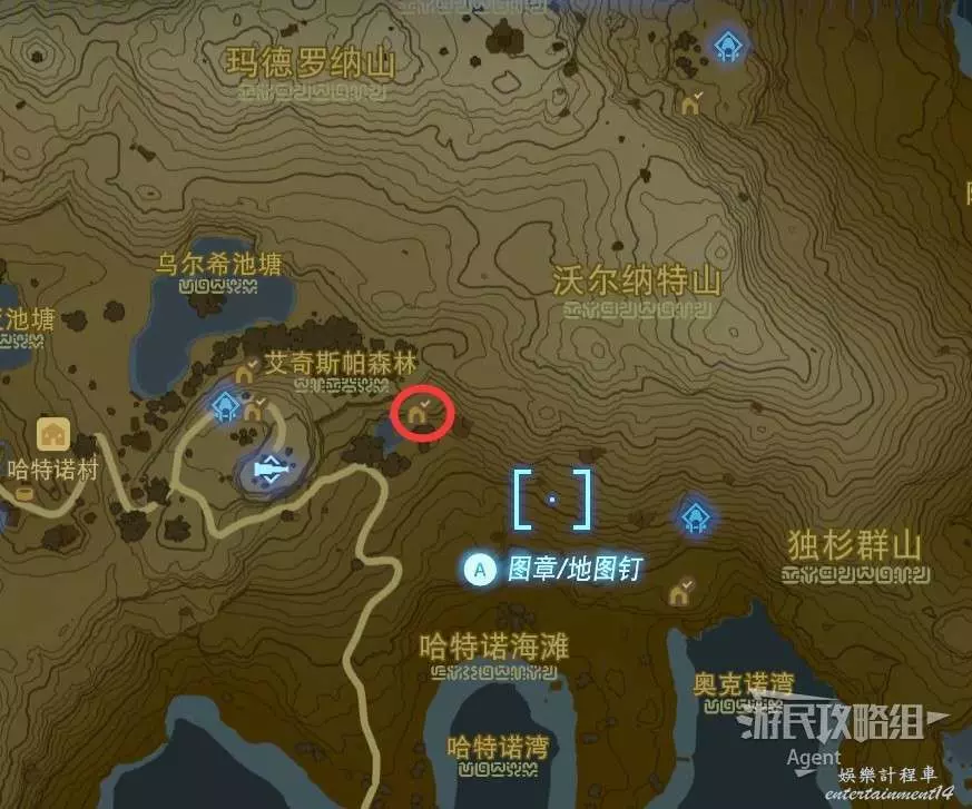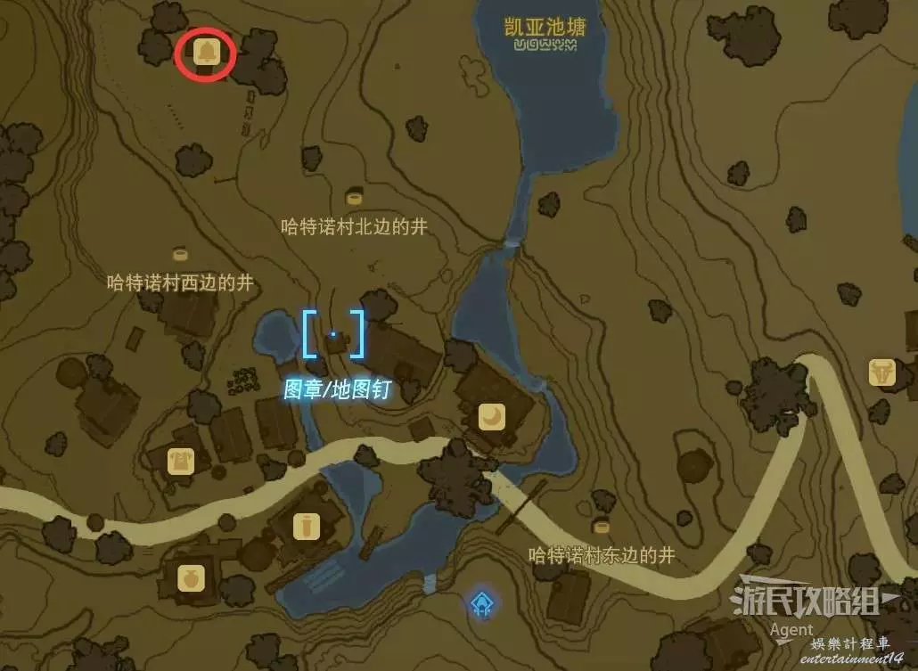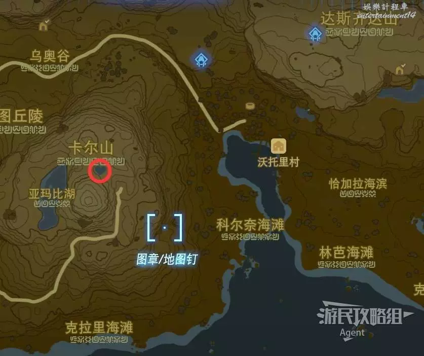愛之池(對應塞爾達)在沃托裡村西面的卡爾山山頂附近,地圖上明顯可以看到一個愛心形狀的水池。