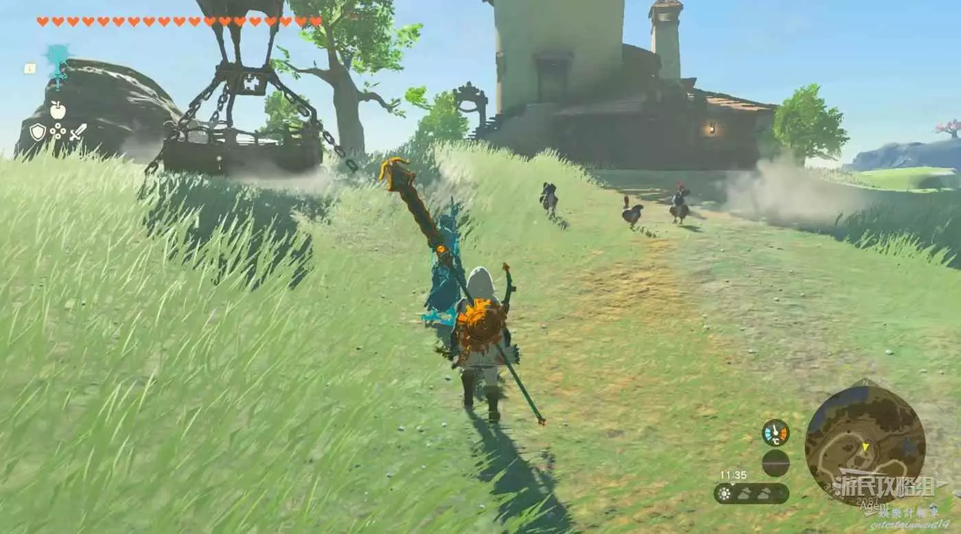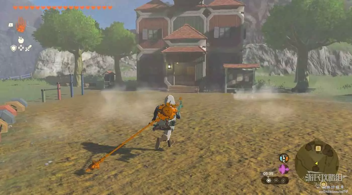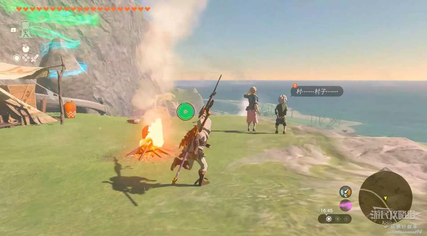 山頂風車處射氣球有呀哈哈。用火堆消磨時間到早上,對海拉魯最美朝陽拍照,拿去雙子驛站掛上。