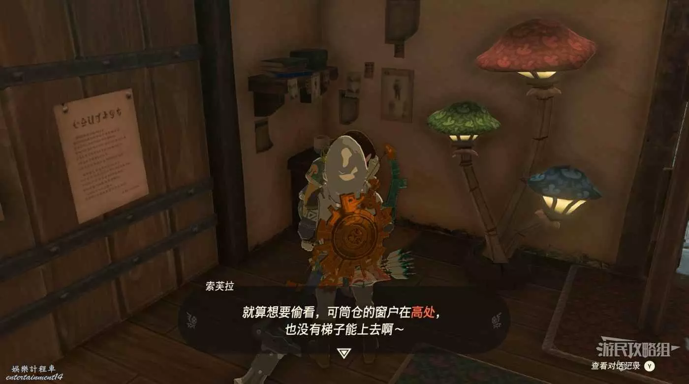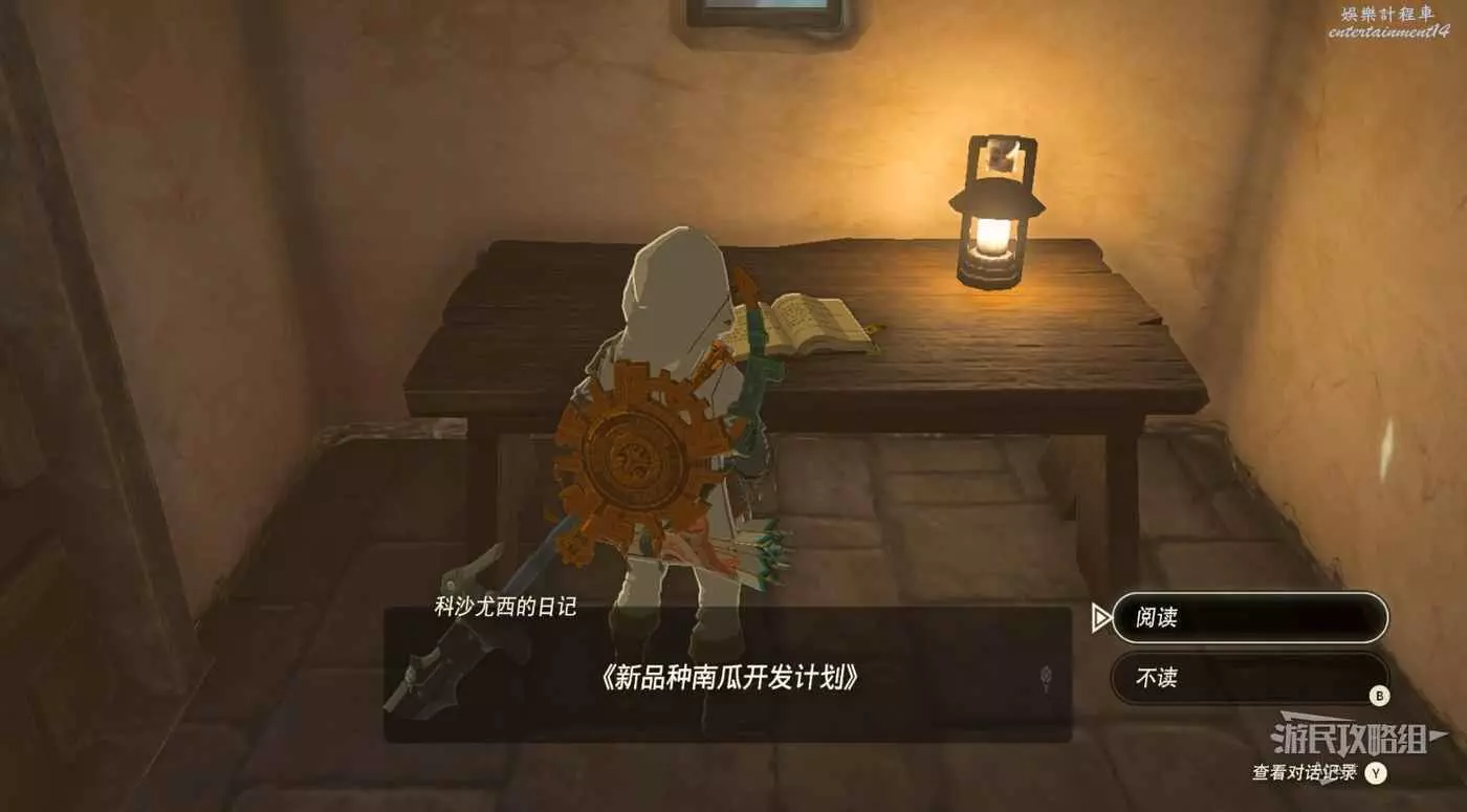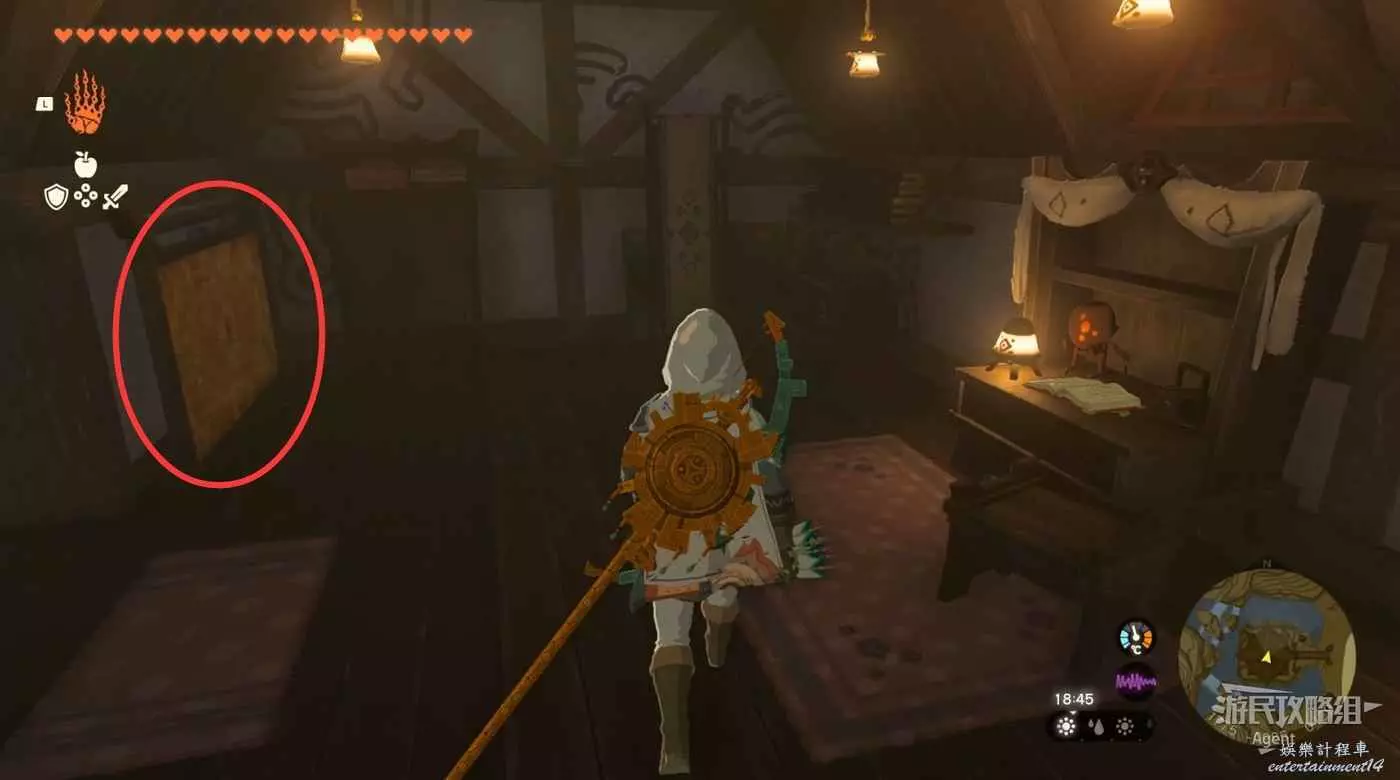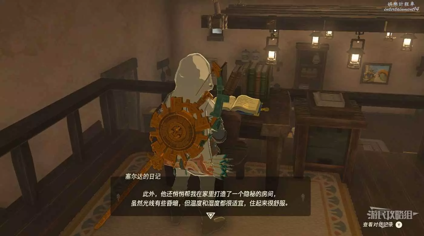 到樓上閱讀塞爾達的日記,得知塞爾達悄悄在家裡打造了一個隱秘的房間。