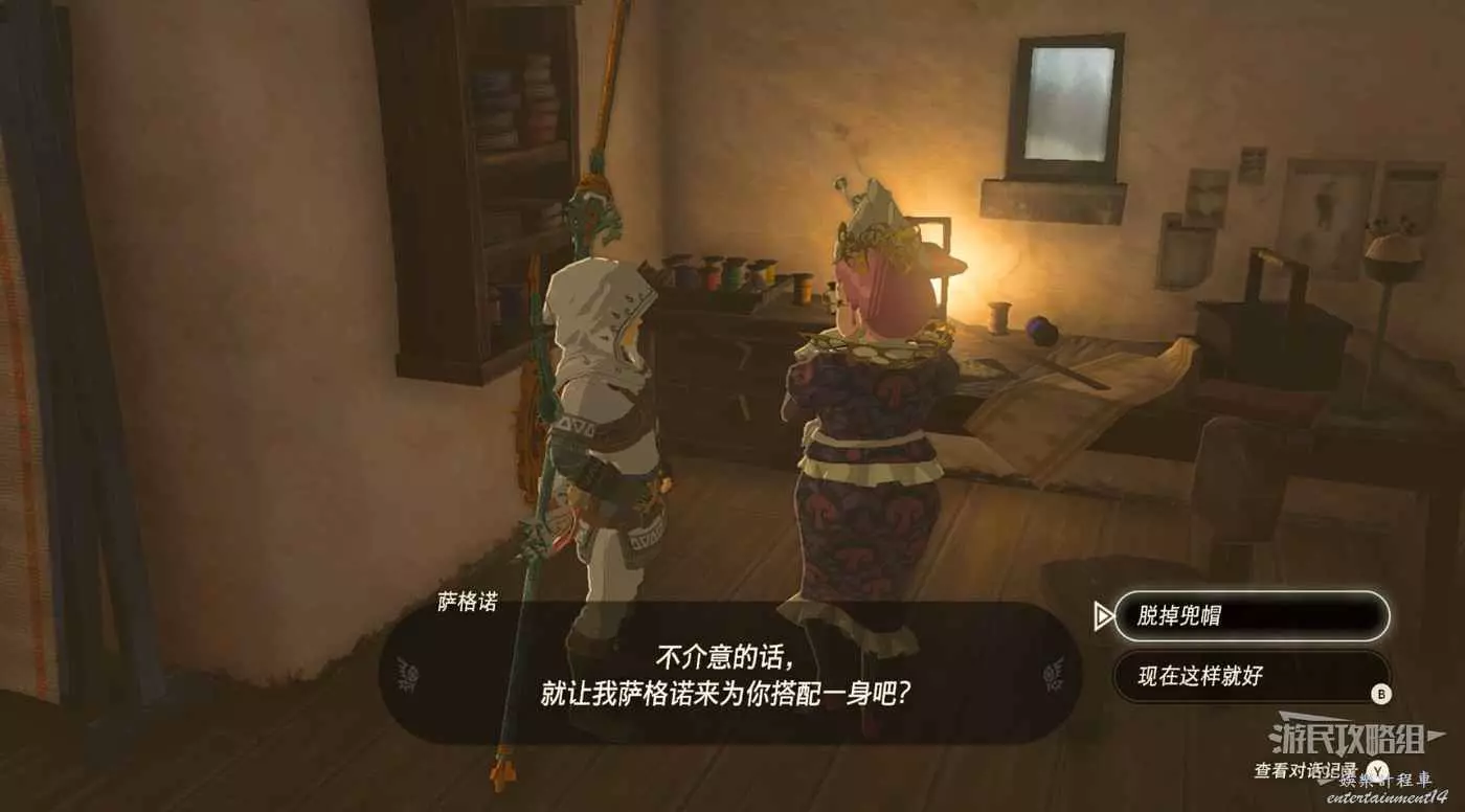 找薩格諾對話,可以把海利亞兜帽放下來,這也單獨算一個【防具】。建議再買一個海利亞兜帽,一個放下來一個保持正常。