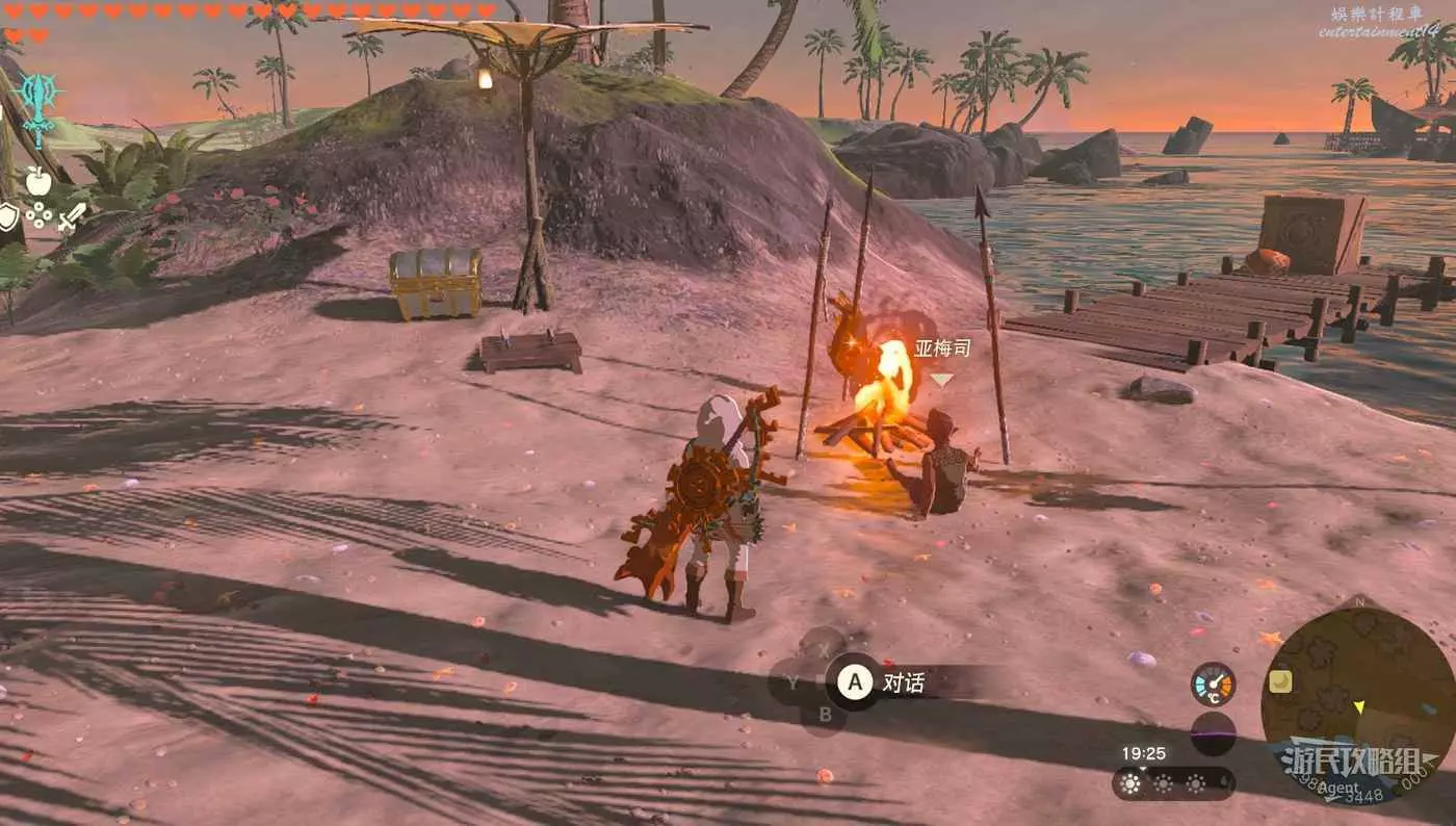 亞梅司還會告訴你個秘密,寶箱店的丁半愛吃烤鯛魚,給他烤鯛魚可以再多玩一次開寶箱遊戲。(自己用鯛魚放火堆旁烤也能獲得烤鯛魚)