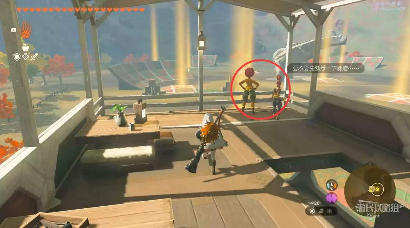 沛恩在雙子驛站頂部,用通天術上去,接到【情節挑戰】塞爾達公主綁架事件!?