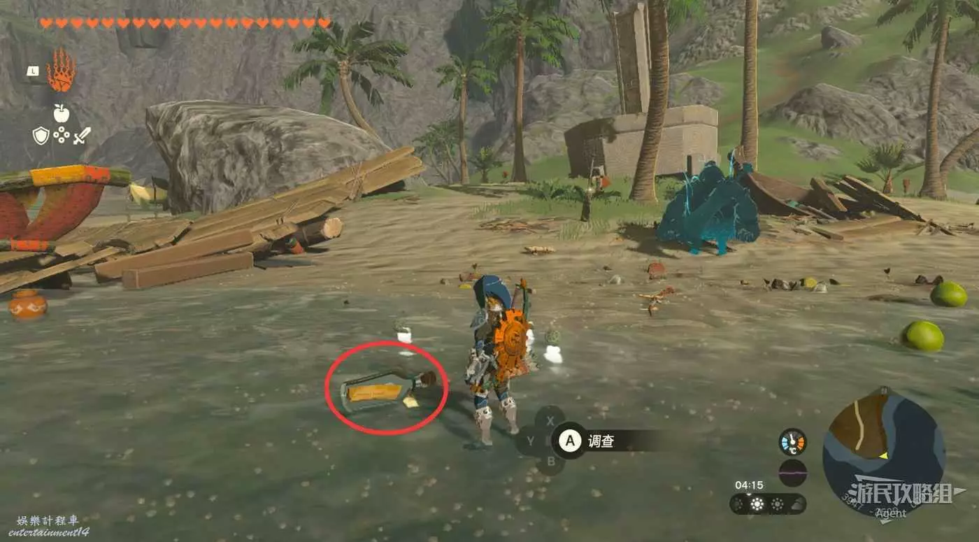 拉力賽外的石頭附近有左納烏裝置和木板,造個船前往東面海上的哈特諾小島。