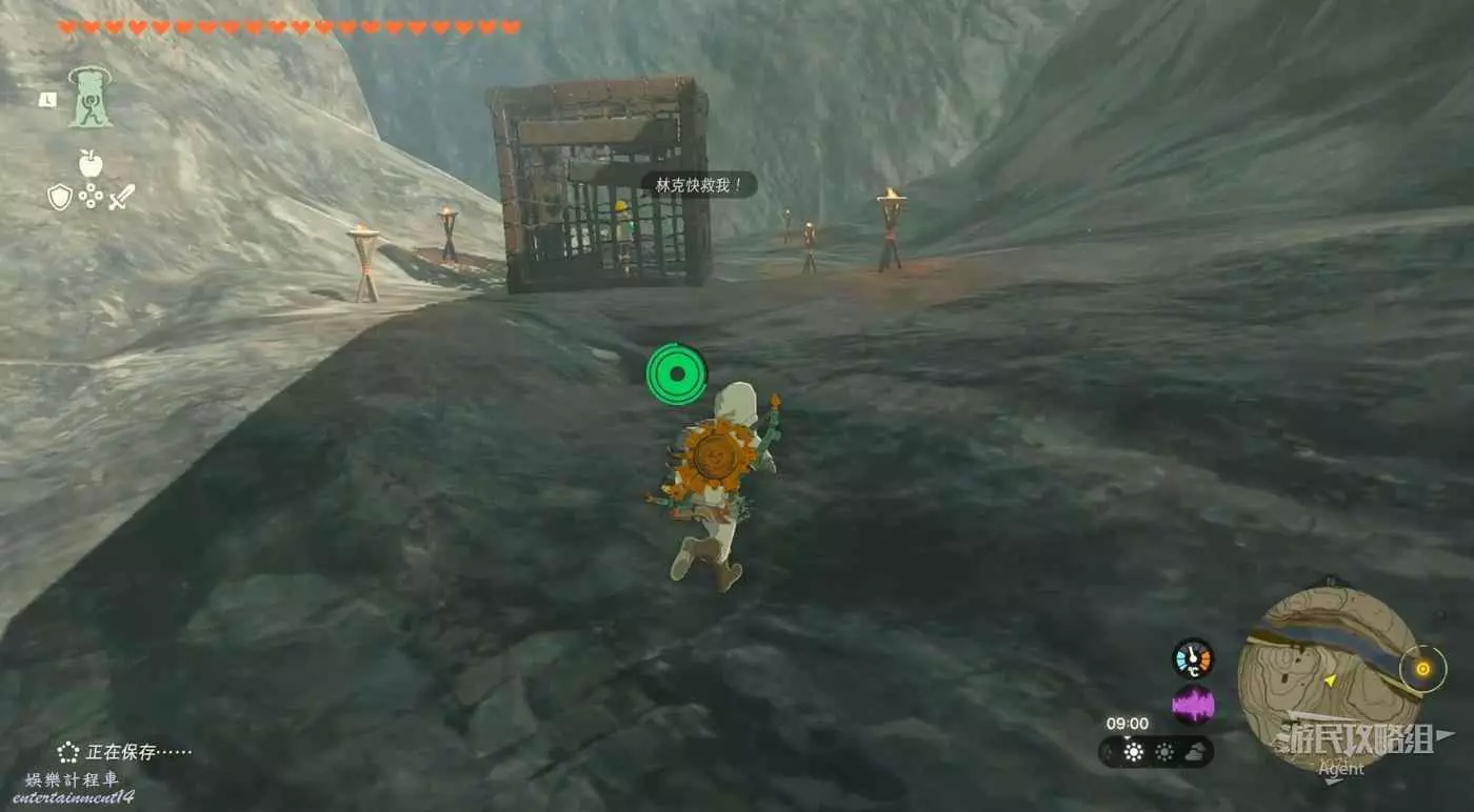 到西邊的雙子山,下圖位置發現關著塞爾達的籠子,抬起籠子戰鬥後完成任務。