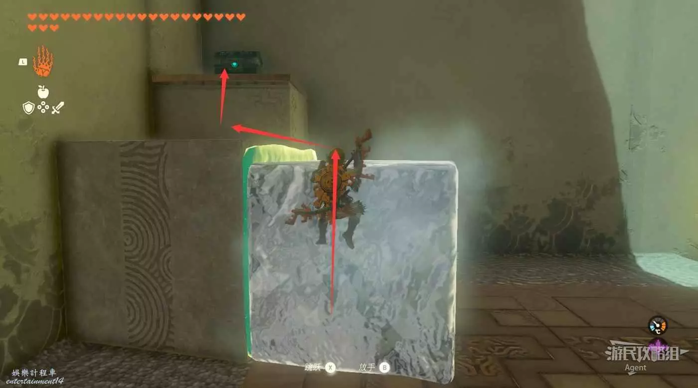 冰塊和立方體組合,就可以爬上去拿寶箱。