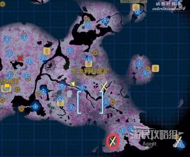所以只需要在下圖位置的深穴守株待兔即可,等它從西面飛過來,經過海利亞湖後會鑽入包美爾高地的深穴,在深穴入口處射龍爪。