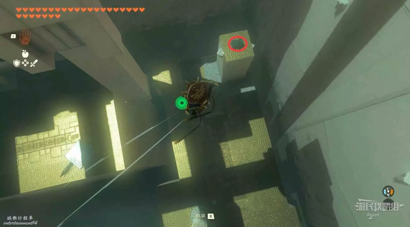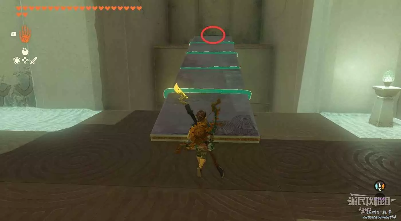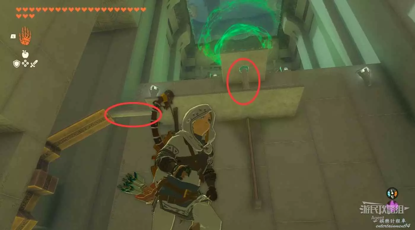 撿起地上的左納尼烏姆之槍,用餘料建造安裝上蝙蝠翅膀。站在旁邊的檯子上,圓環就會亮起,朝圓環投擲帶翅膀的左納尼烏姆之槍,神廟就會出現。