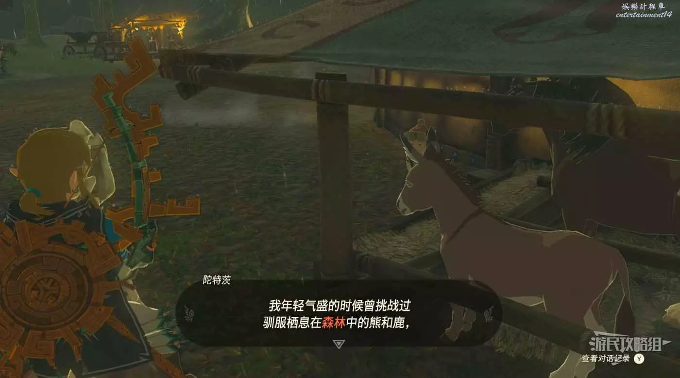 與馬廄旁的陀特茨對話,接到【迷你挑戰】看馬人的願望。