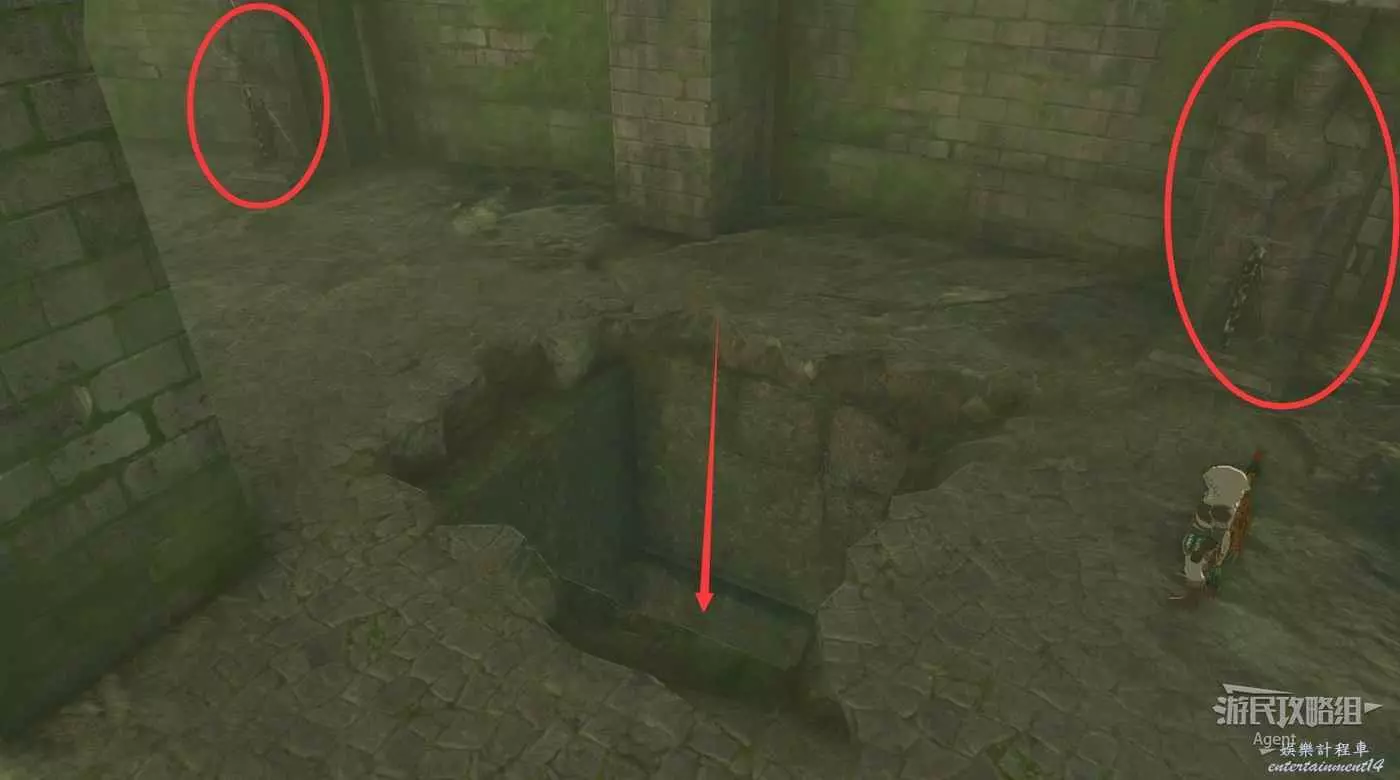 到井底打碎石塊,看到被關的人,對話得知要去對面的洞窟踩機關救他。