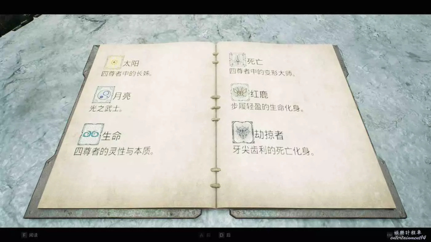 三角的直角尖朝左,按照順時針順序為紅鹿,死亡,劫掠者。